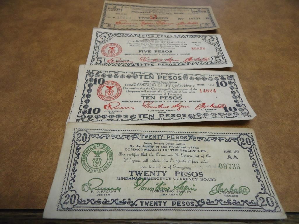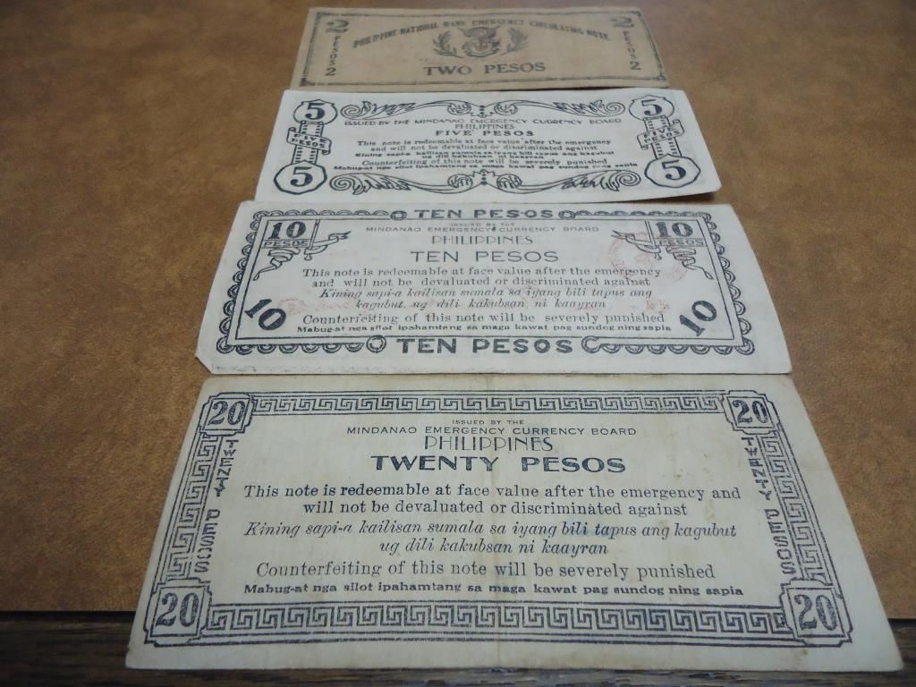 2,5,10 & 20 PESOS WWII PHILIPINNES GUERRILLA MONEY