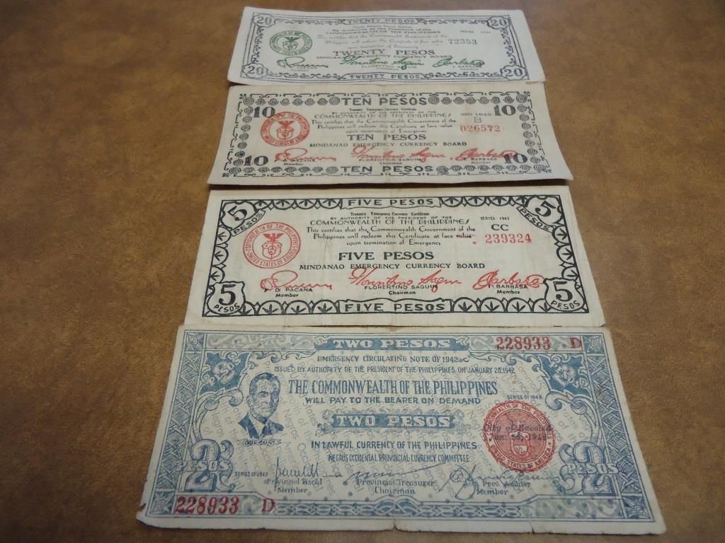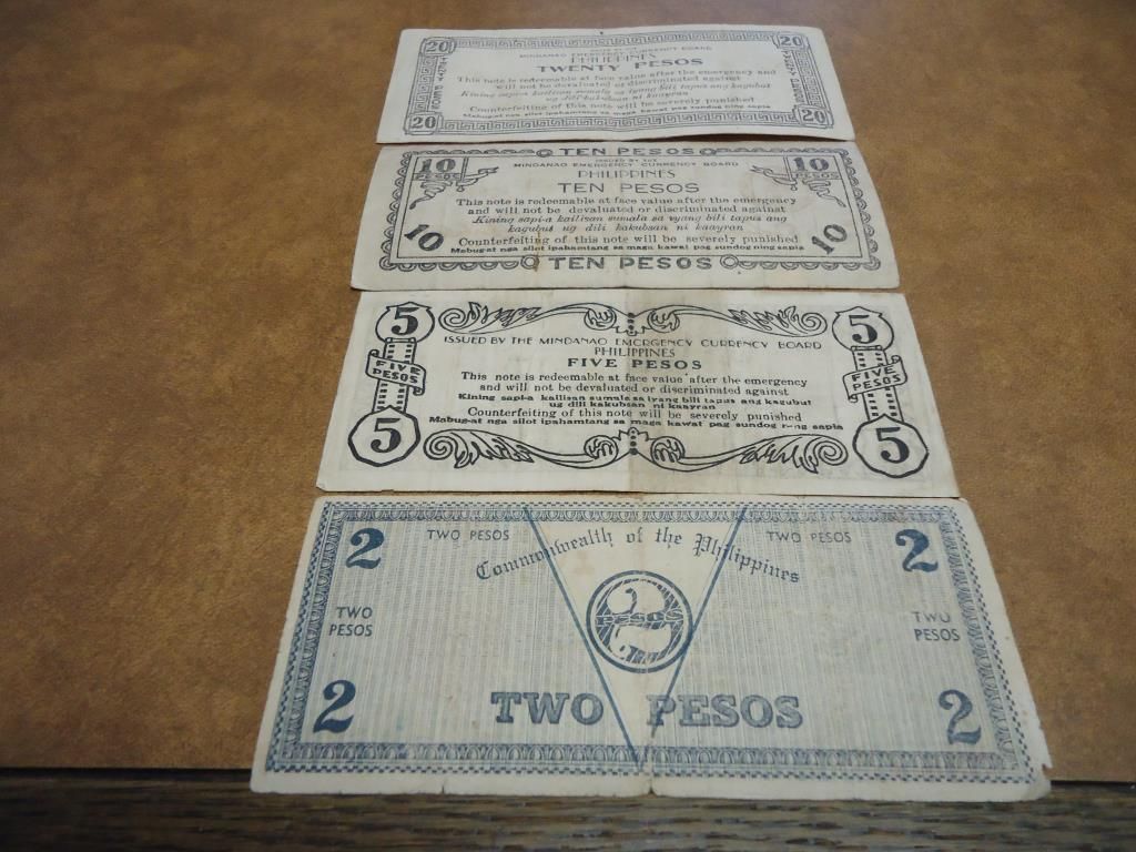2,5,10 & 20 PESOS WWII PHILIPINNES GUERRILLA MONEY