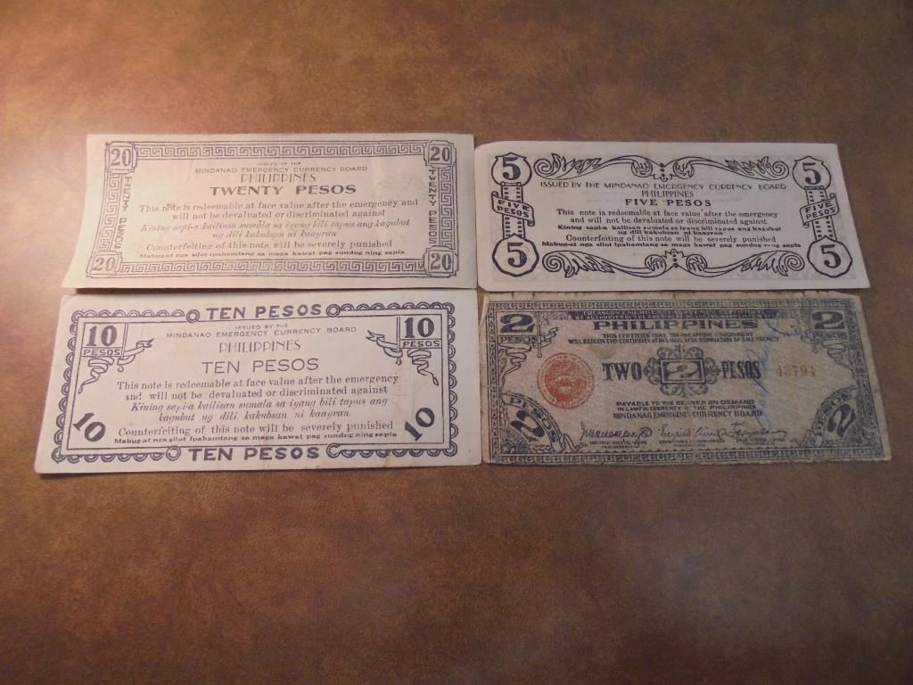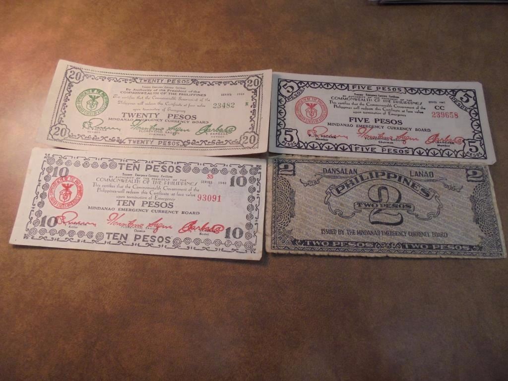 2,5,10 & 20 PESOS WWII PHILIPINNES GUERRILLA MONEY