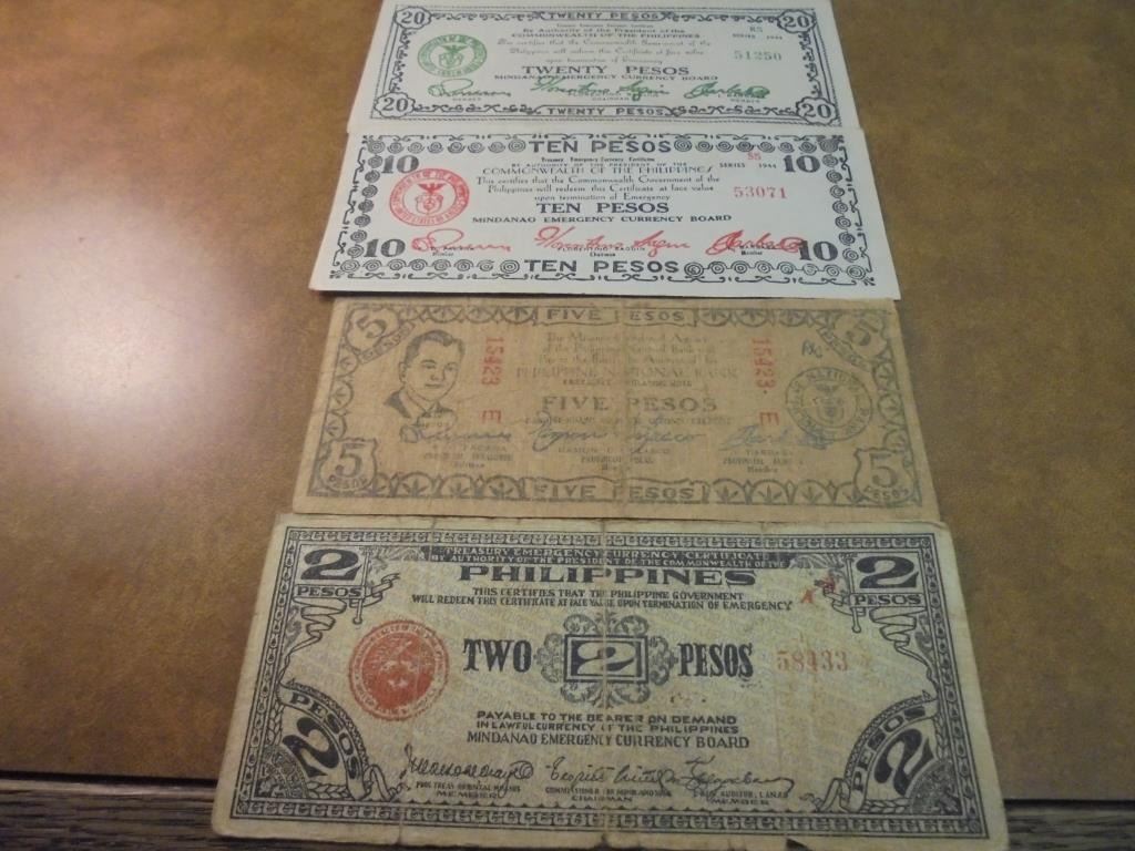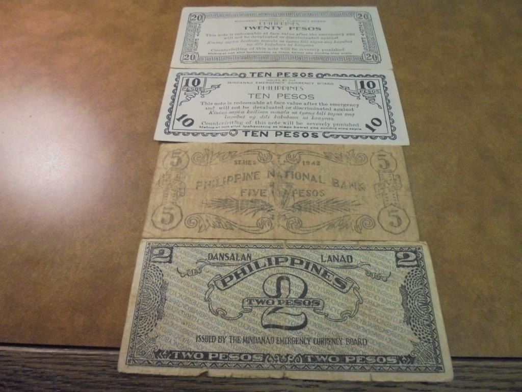 2,5,10 & 20 PESOS WWII PHILIPPINES GUERRILLA MONEY
