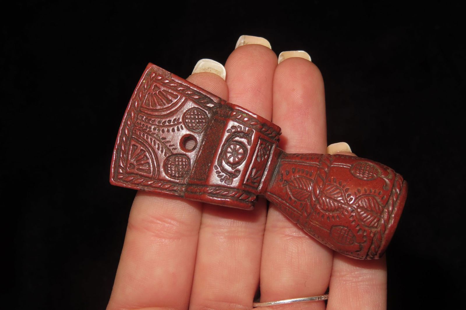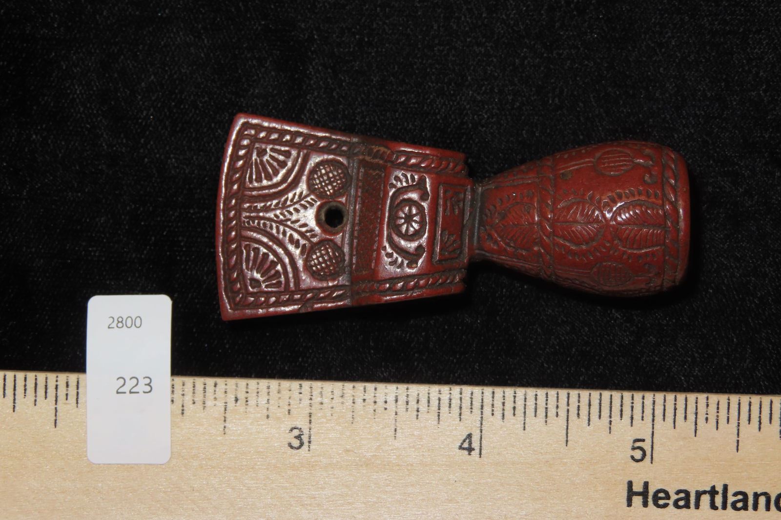2 5/8" Mic Mac Pipe made of Catlinite, Broken/Reglued Late 1800's. Incredible Design