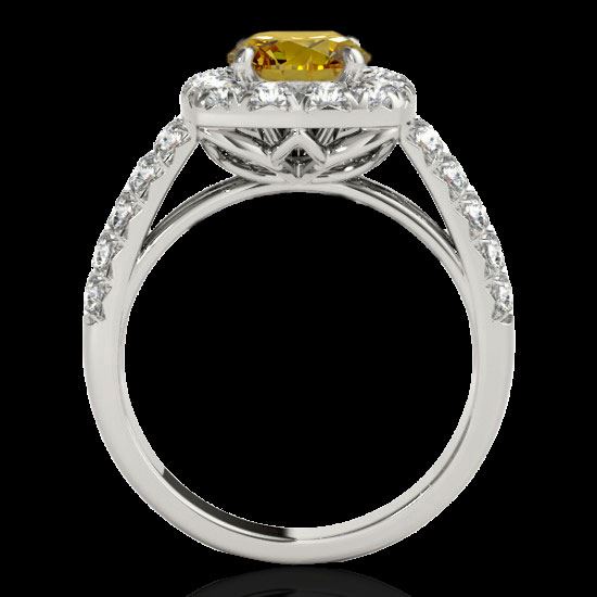 2.5 CTW Certified Si Fancy Intense Yellow Diamond Solitaire Halo Ring 10K White Gold ---- Luxury Designer Brand Ring Appraised Retail Price at $15,750 ---- SKU Number US33650 10k White gold Ring Size is 7, Ring measuring approx. Uniform, weighing in total approx. 7 grams. Made in the USA and is stamped 10k, Main stone 1.25 carat total weight containing 1 pieces of Intense Fancy Yellow color with SI quality Round shape cut Diamond , Stone #2 1.25 carat total weight containing 32 pieces of H-I color with VS/SI quality Round shape cut