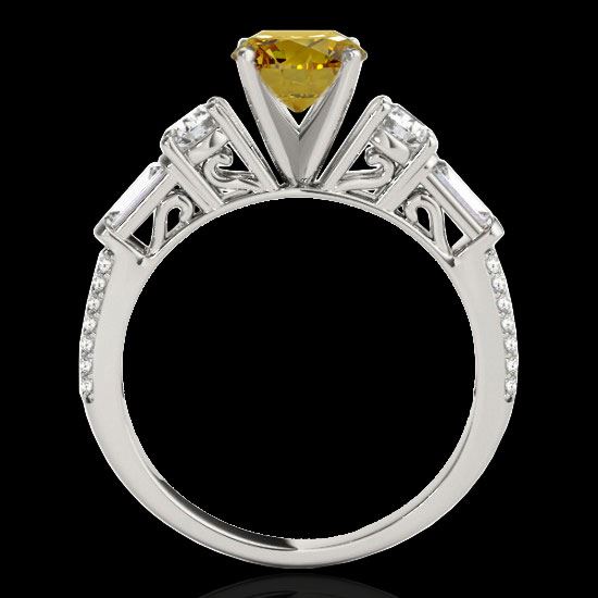 REF-327A3X -35487 ---- 2.5 CTW Certified Si/I Fancy Intense Yellow Diamond Pave Solitaire Ring 10K White Gold ---- Luxury Designer Brand Ring Appraised at $19,800 Certificate Number US35487 10k White gold, Ring Size is 7, Ring measuring approx. Uniform, weighing in total approx. 3.8 grams. Made in the USA and is stamped 10k, Main stone 1.5 carat total weight containing 1 pieces of Intense Fancy Yellow color with SI quality Round shape cut Diamond , Stone #2 1 carat total weight containing 46 pieces of H-I color with VS/SI quality Round & Baguette shape cut Diamond