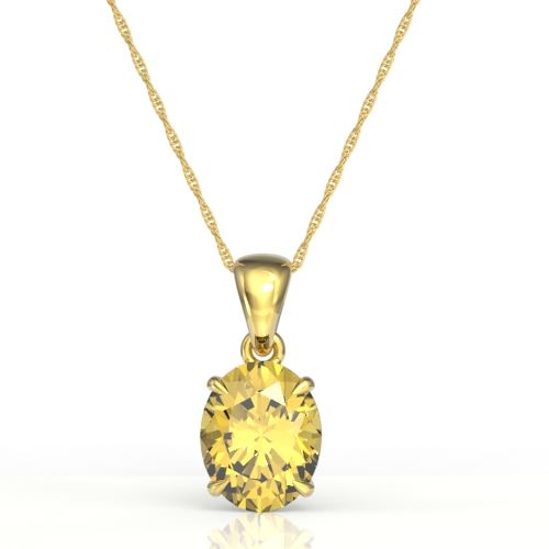 REF-29H3A -21859 ---- 2.5 CTW Citrine Designer Inspired Solitaire Necklace 18K Yellow Gold ---- Luxury Designer Brand Necklace Appraised at $1,750 Certificate Number US21859 18k Yellow gold, Necklace Size is 16 Inches, Necklace measuring approx. 12 mm x 10mm, weighing in total approx. 3.2 grams. Made in the USA and is stamped 18k, Main stone 2.5 carat total weight containing 1 pieces of Translucent Yellow color with AAA quality Oval shape cut Citrine , Stone #2 carat total weight containing pieces of color with quality shape cut