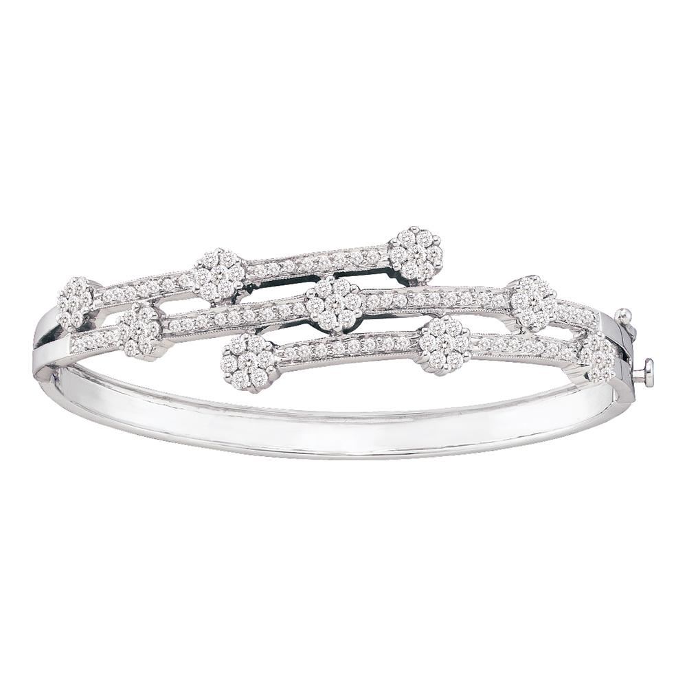 REF-312H2M- SKU: GD15095 ---- 2.5 CTW Diamond Flower Cluster Bangle Bracelet 14KT White Gold