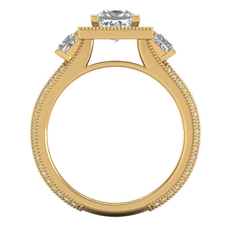 REF-527K3W -37198 ---- 2.5 CTW Princess VS/SI Diamond Micro Pave 3 Stone Ring 18K Yellow Gold ---- Luxury Designer Brand 3 stone ring Appraised at $26,100 Certificate Number US37198 18k Yellow gold, 3 stone ring Size is 7, 3 stone ring measuring approx. Uniform, weighing in total approx. 7 grams. Made in the USA and is stamped 18k, Main stone 1.06 carat total weight containing 1 pieces of H-J color with VS/SI quality Princess shape cut Diamond , Stone #2 0.59 carat total weight containing 2 pieces of H-I color with VS/SI quality Princess shape cut Diamond , Stone #3 0.85 carat total weight containing 104 pieces of G-H color with VS/SI quality Round shape cut Diamond