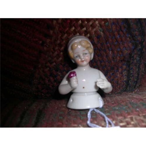 2.5" German China Half Child Doll Arms Away. Doll comes from a smoke free environment. Buyer to pay shipping, handling, and, insurance. Thanks for viewing.