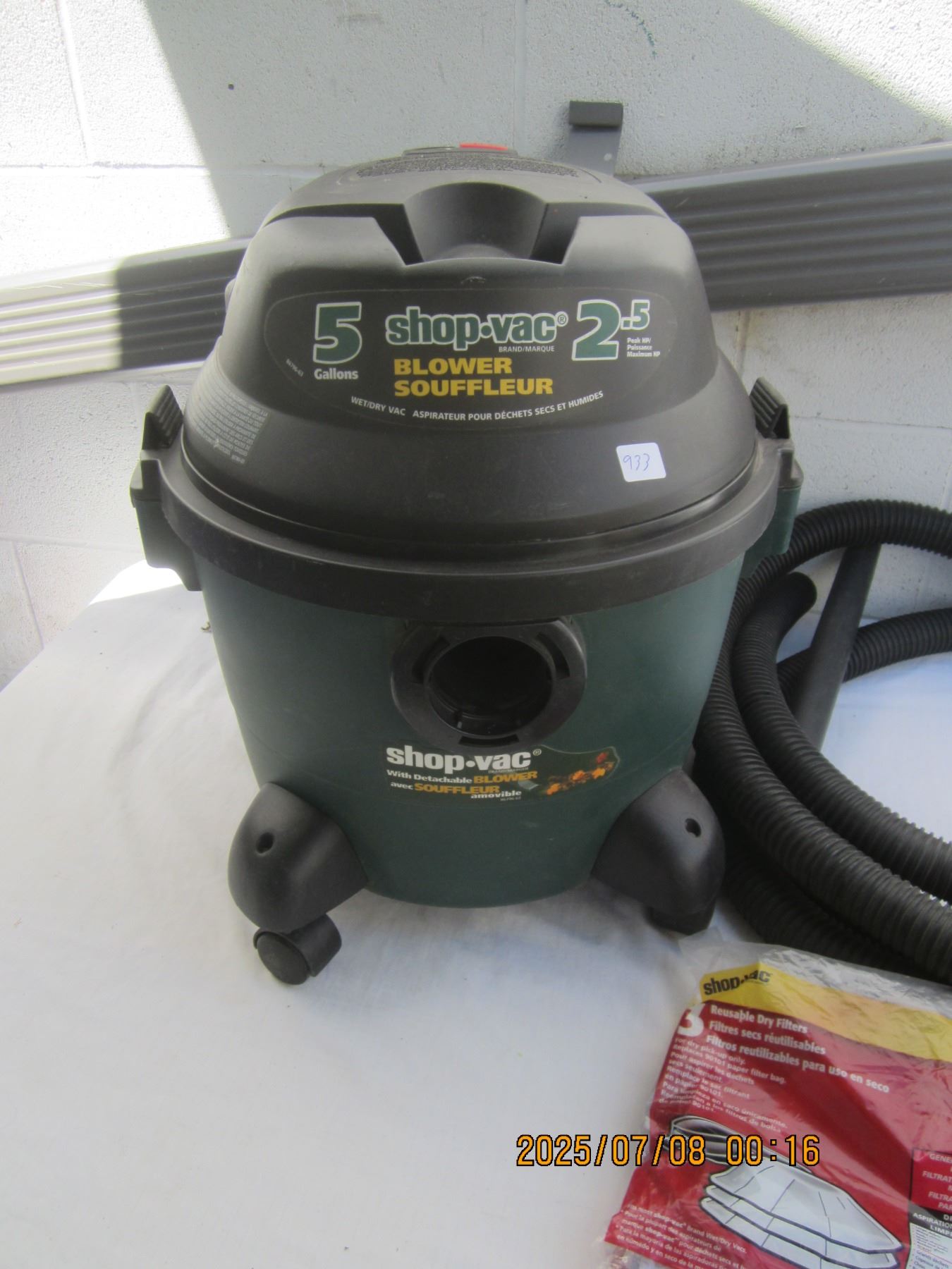 2.5 HP Shop Vac with Accessories Works Well