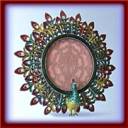 SOLID PEWTER FRAME IS DETAILED IN 24K GOLD AND GENUINE, AUSTRIAN SWAROVSKI CRYSTALS TO CREATE THIS GORGEOUS 3D PEACOCK PHOTO FRAME .... MUST VIEW PHOTOS BELOW TO SEE BOTH THE FRONT AND THE BACK! A TRUE WORK OF ART IN ITSELF! P-200