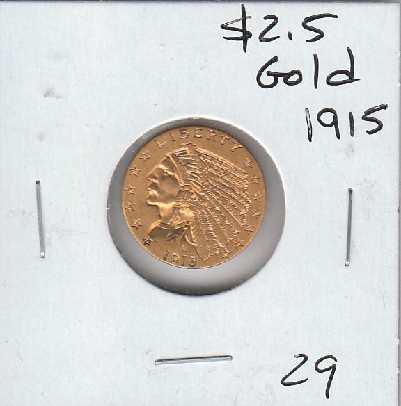 $2.5 INDIAN GOLD 1915 SHARP DETAILS