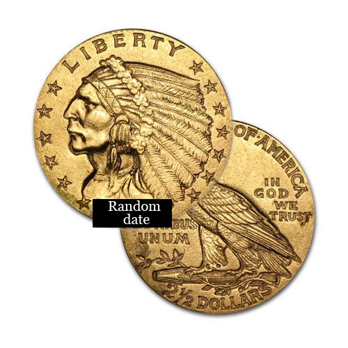 One piece $2.5 Gold Coin Indian Head - Quarter Eagle Bullion Coin 1/10 Oz (1908 - 1929). CIRCULATED - Dates Of Our Choice