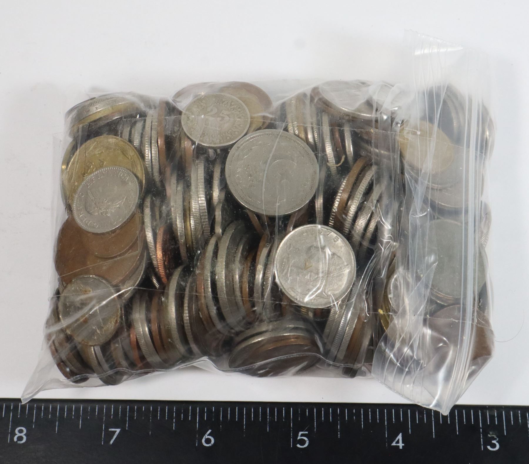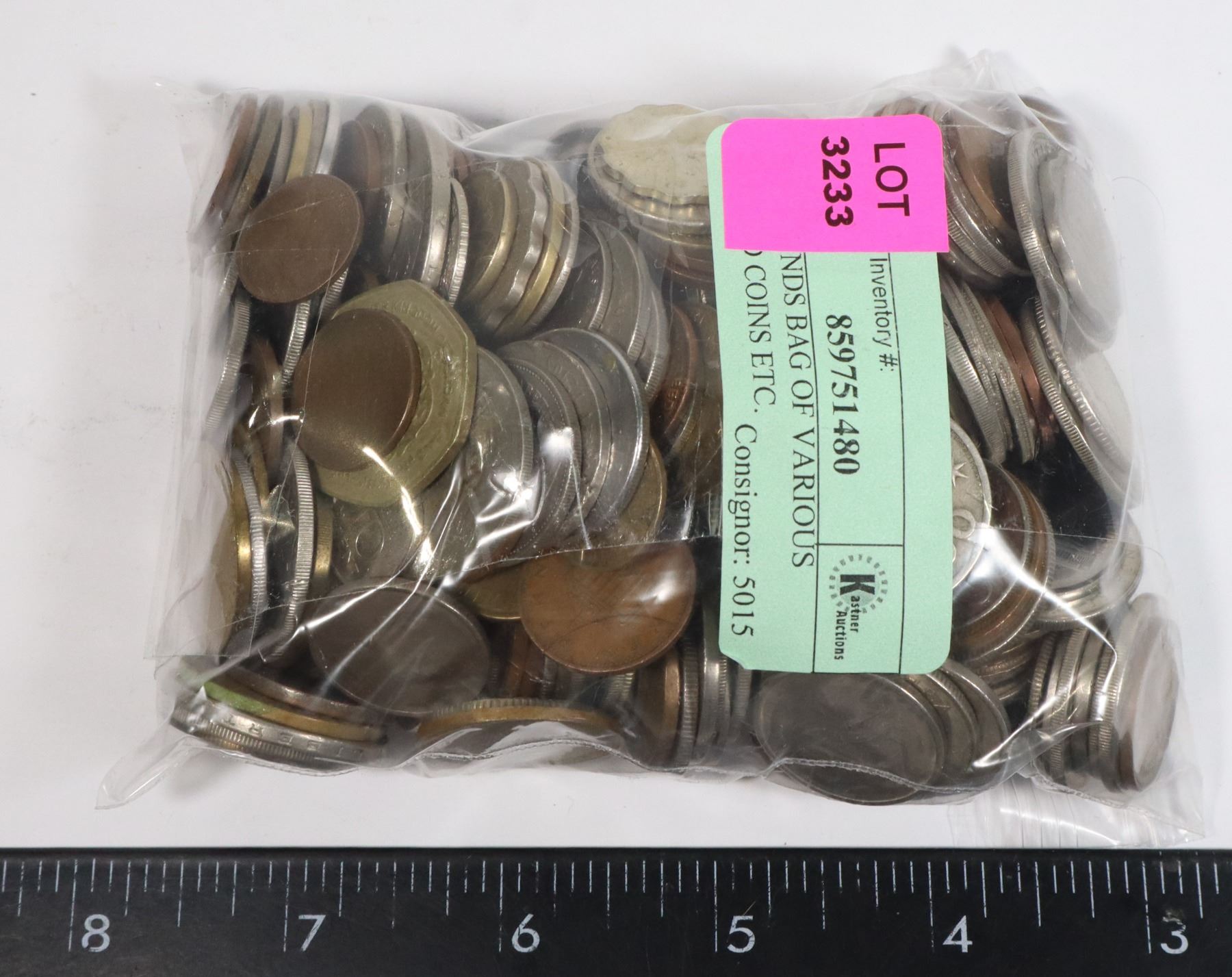 2.5 POUNDS BAG OF VARIOUS WORLD COINS ETC.