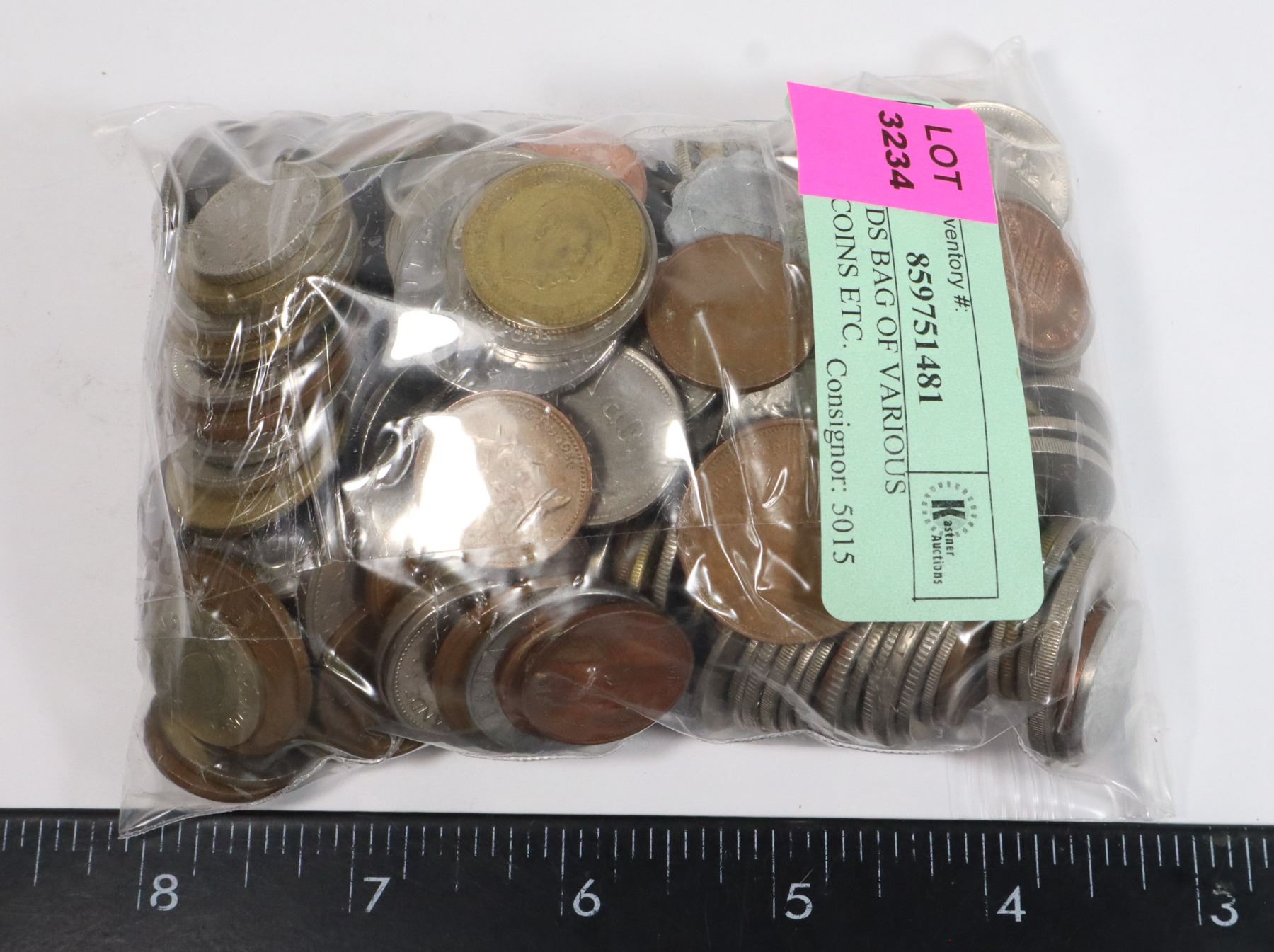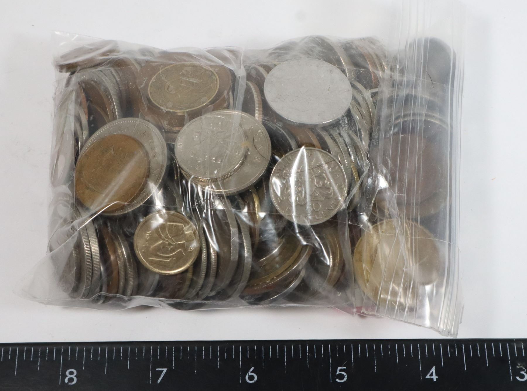2.5 POUNDS BAG OF VARIOUS WORLD COINS ETC.