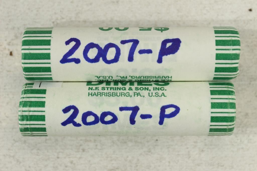 2-$5 ROLLS OF 2007-P ROOSEVELT DIMES BRILLIANT UNC