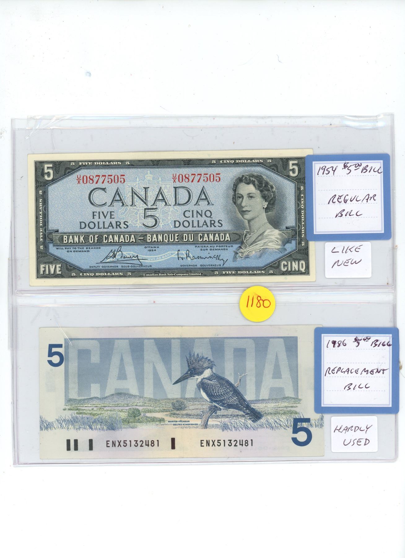 2( $5 bills- 1-1954 hardly used & 1-1986-like new