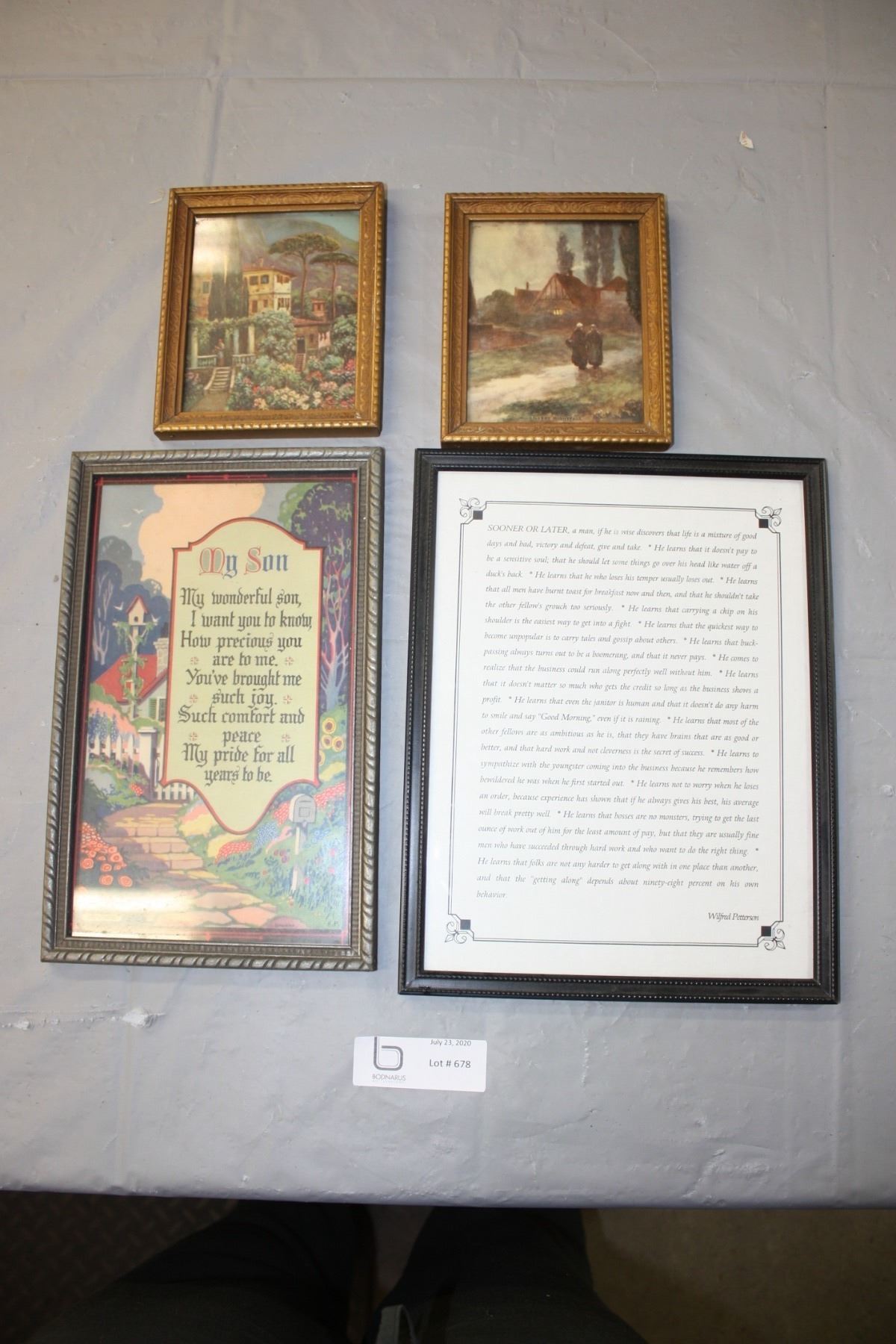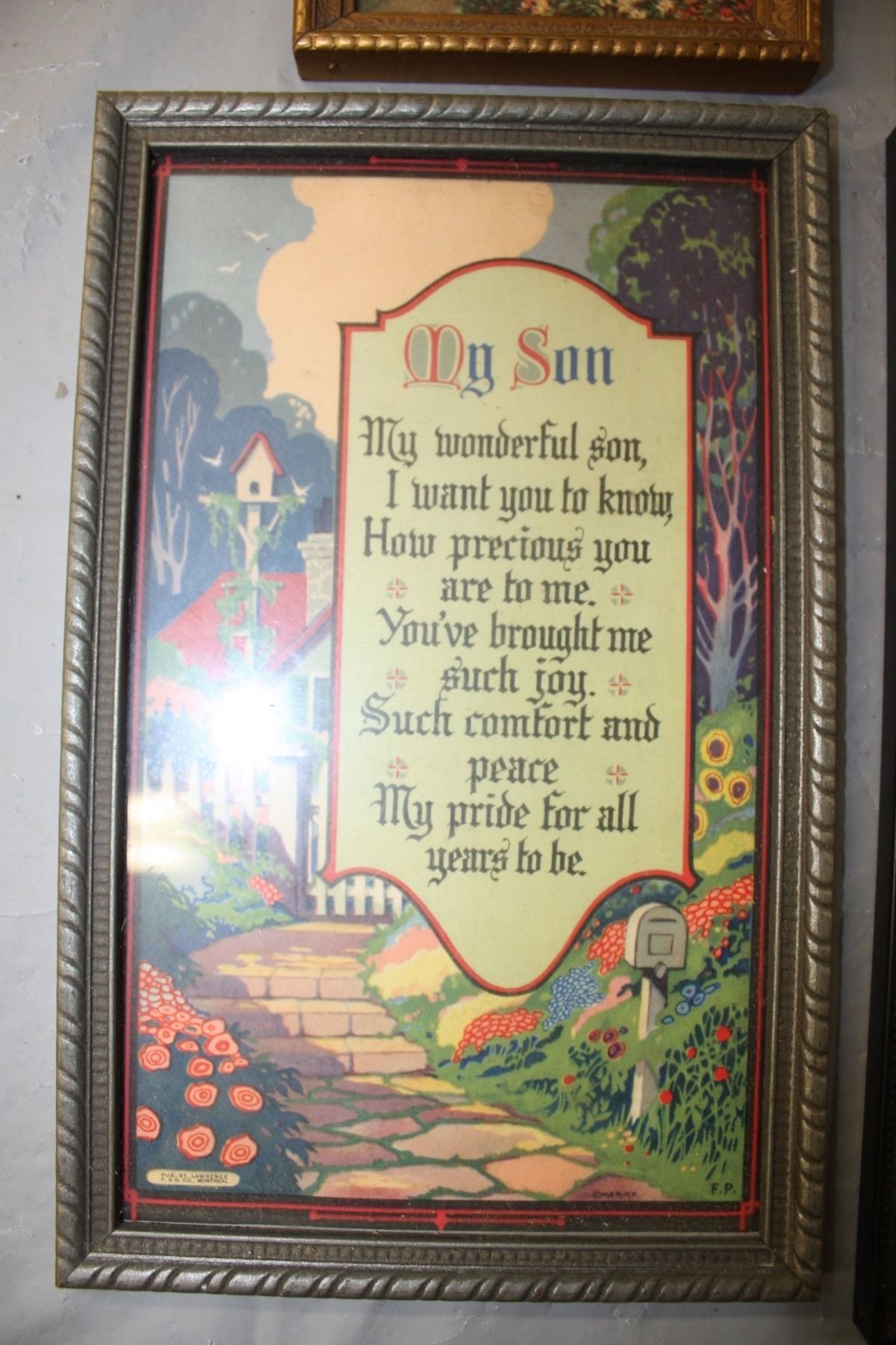 2 5" by 6" Gold Frame European Scenes, Framed Verse "What a Man Learns" 9" by 12" and "My Son" Poem