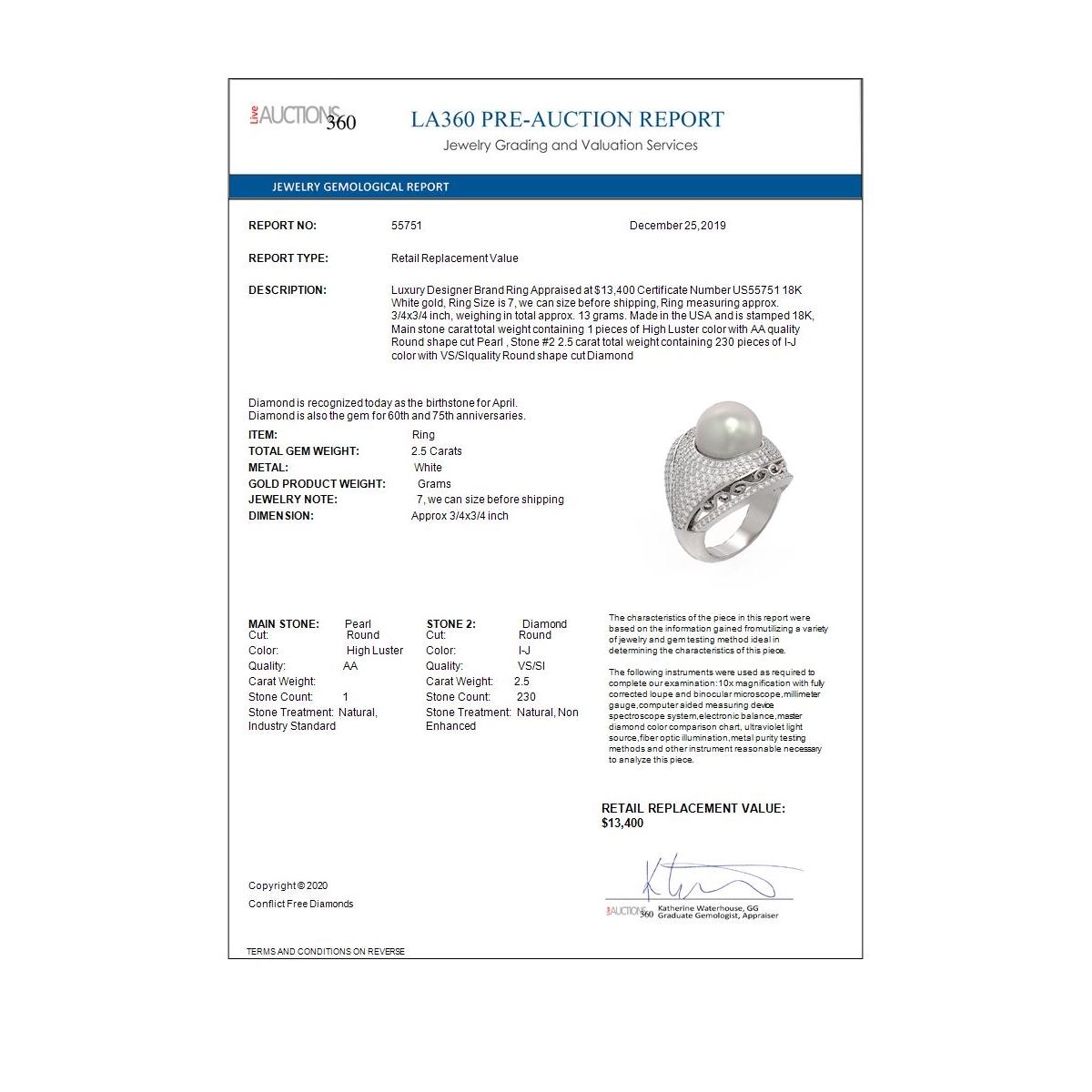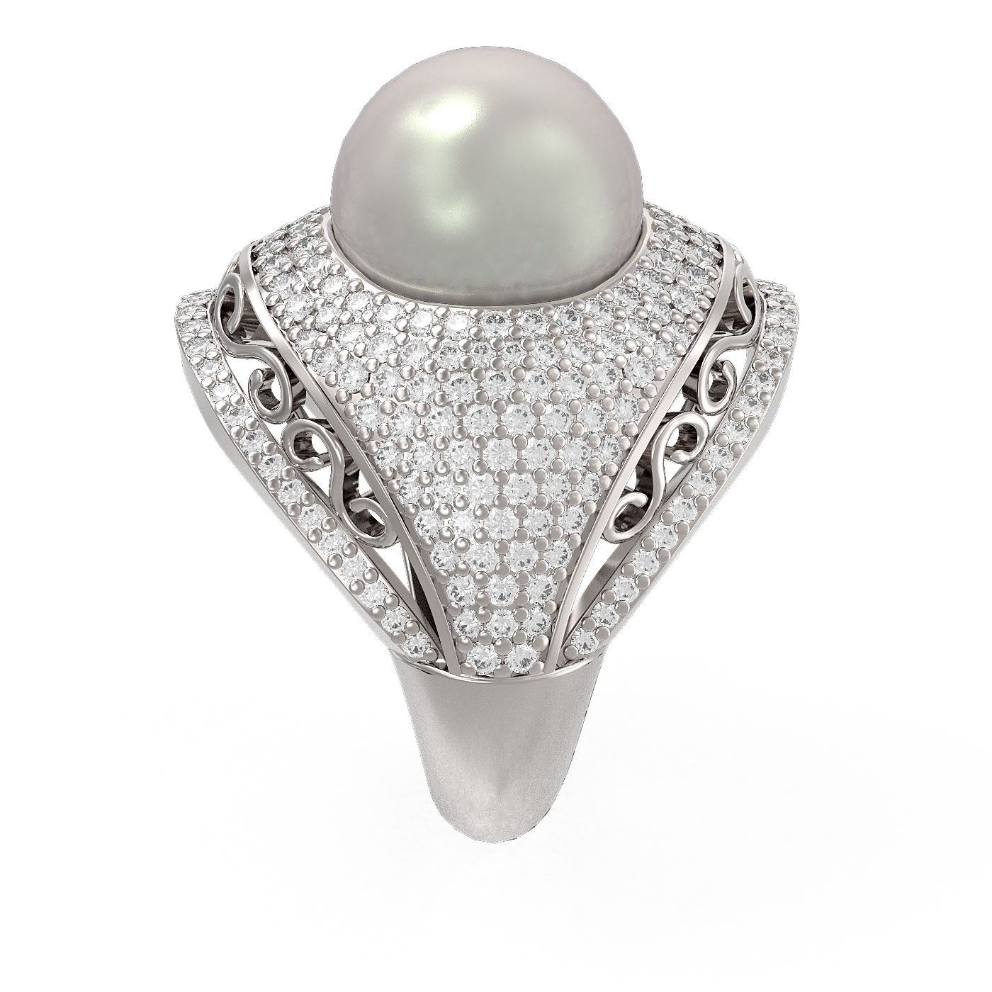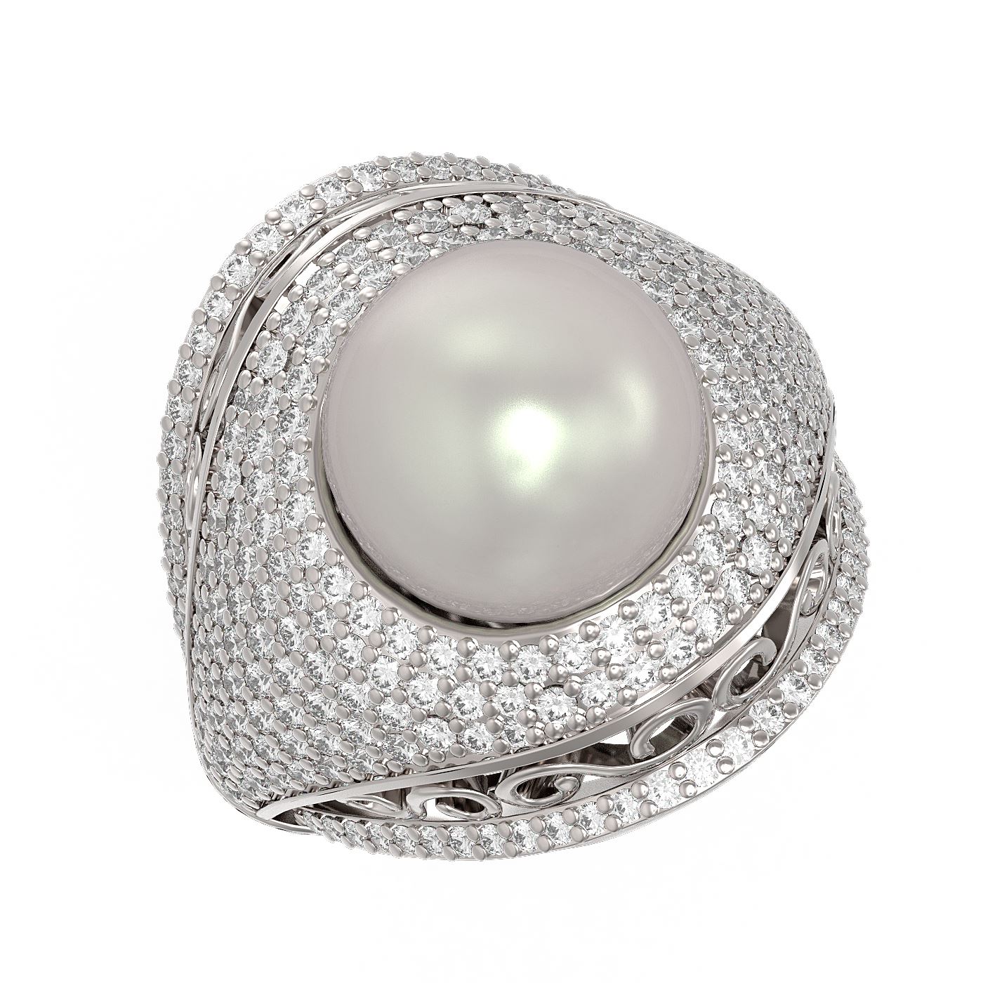 REF-270F4M - SKU: 55751 ---- 2.5 ctw Diamond & Pearl Ring 18K White Gold