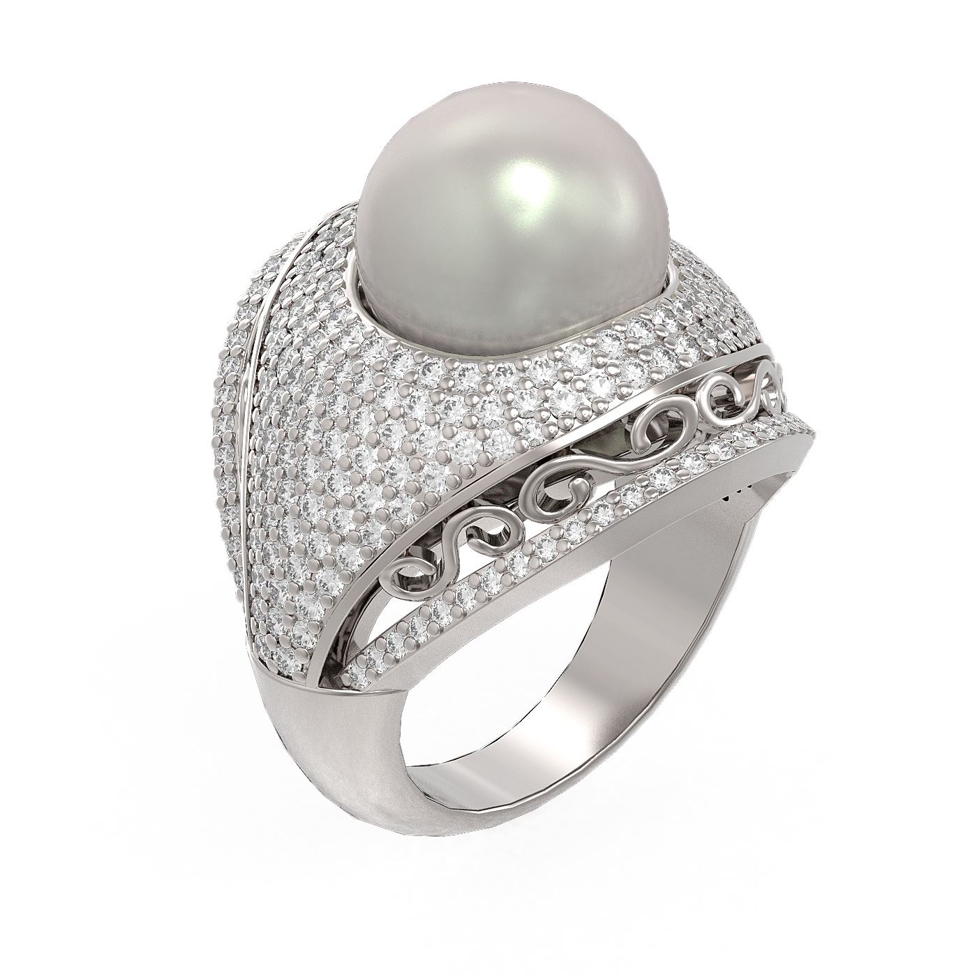 REF-270F4M - SKU: 55751 ---- 2.5 ctw Diamond & Pearl Ring 18K White Gold