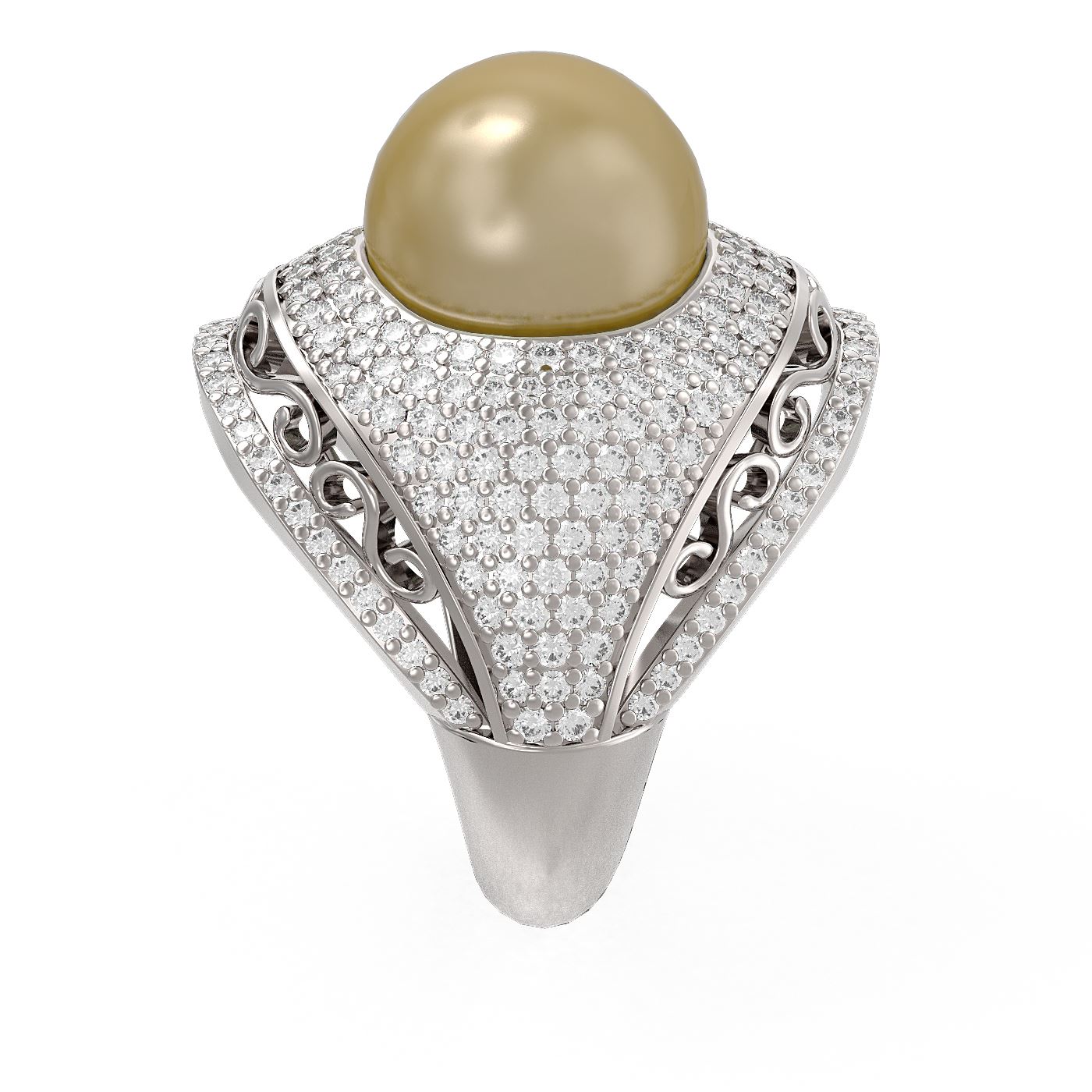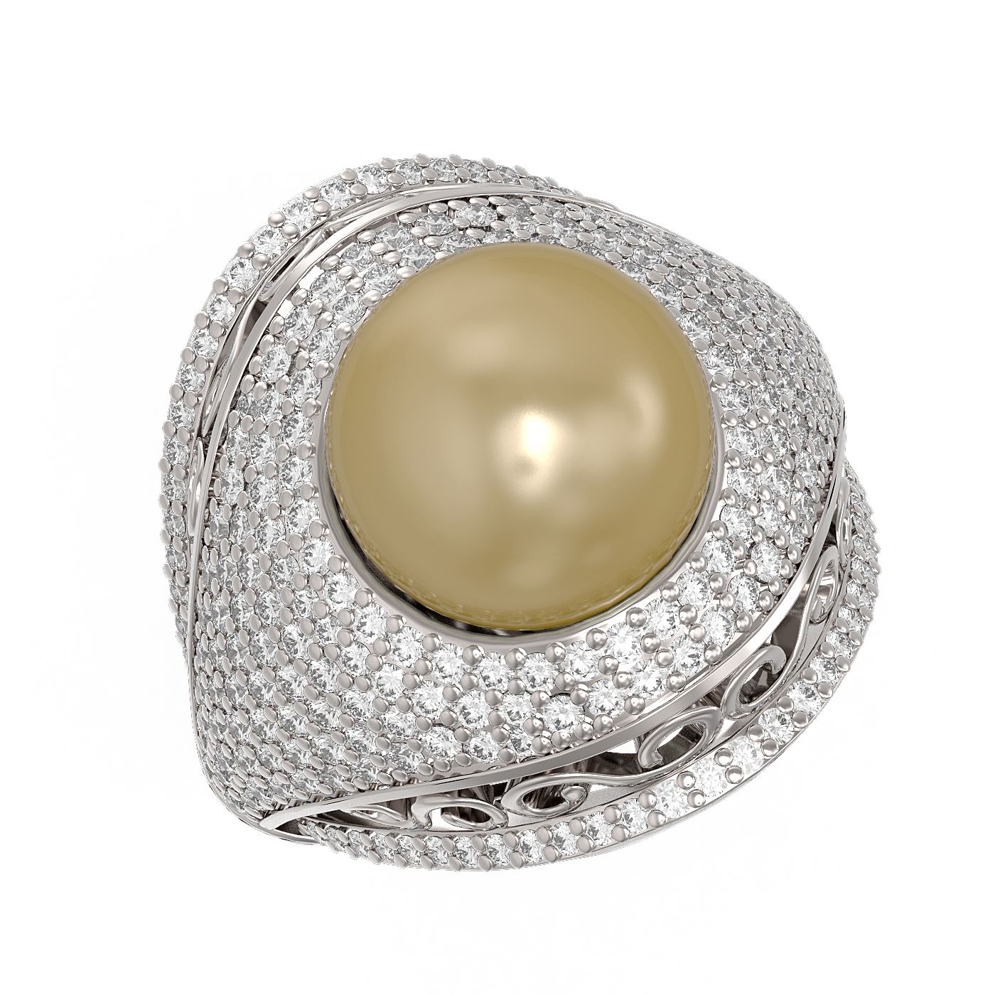 SKU: 55745 ---- 2.5 ctw Diamond & Pearl Ring 18K White Gold