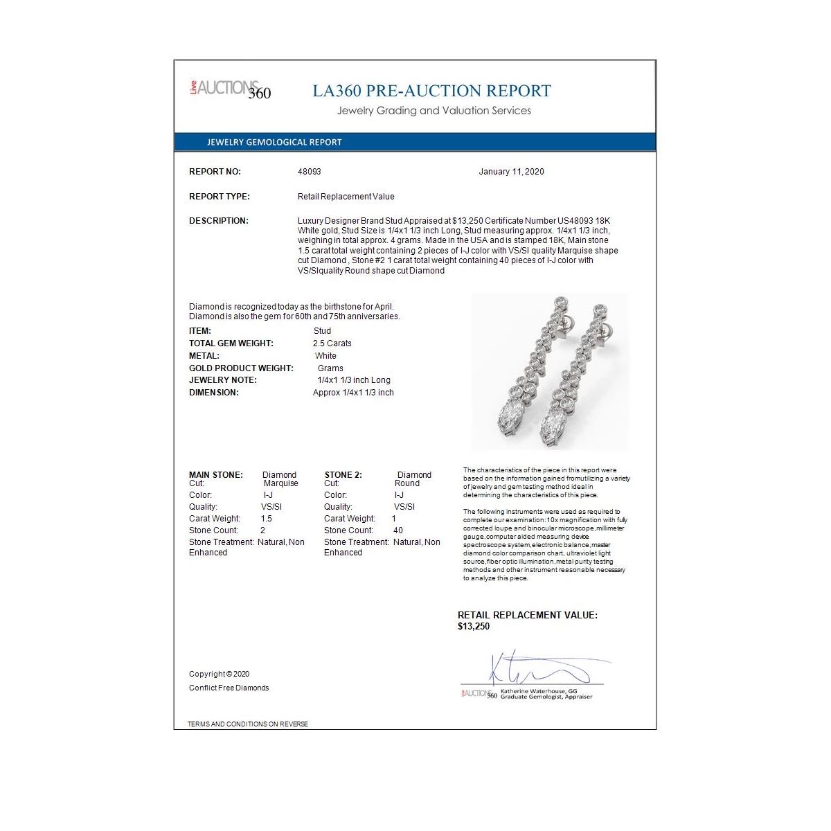 REF-351Y9X - SKU: 48093 ---- 2.5 ctw Marquise Cut Diamond Designer Earrings 18K White Gold
