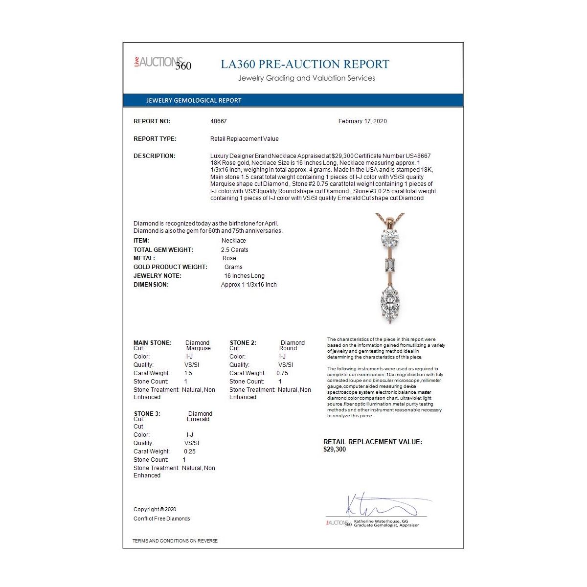 REF-666W2H - SKU: 48667 ---- 2.5 ctw Marquise Cut Diamond Designer Necklace 18K Rose Gold