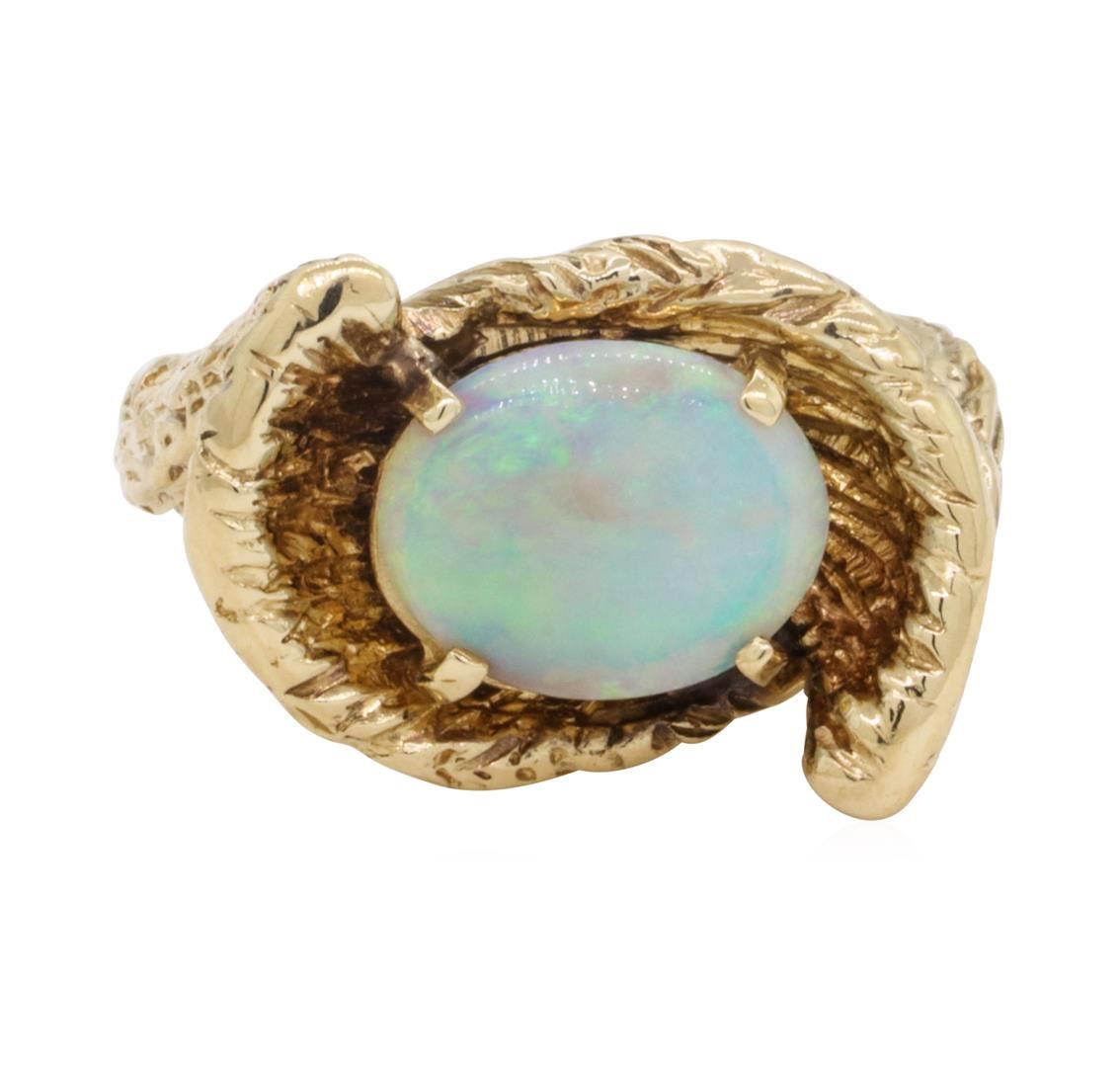 One lady's ring featuring: 14KT yellow gold weighing 8.4 grams containing one opal weighing 2.50ctw.