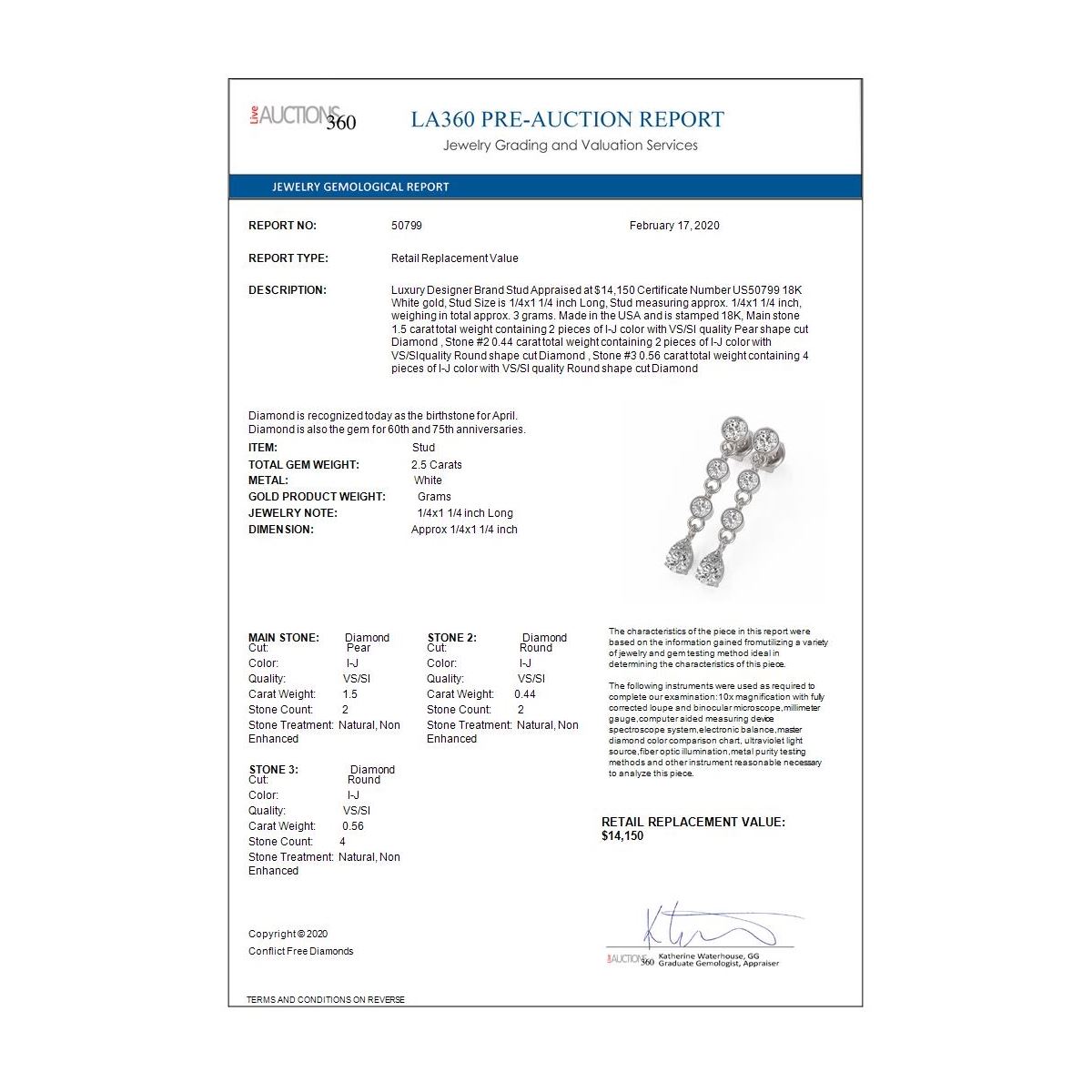 REF-321M8G - SKU: 50799 ---- 2.5 ctw Pear Cut Diamond Earrings 18K White Gold