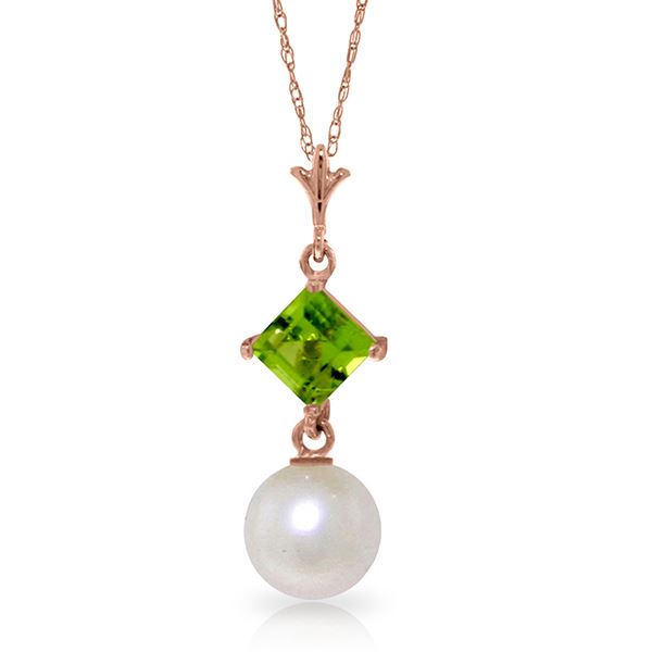 Genuine 14K Rose Gold 2.5 ctw Pearl & Peridot Necklace