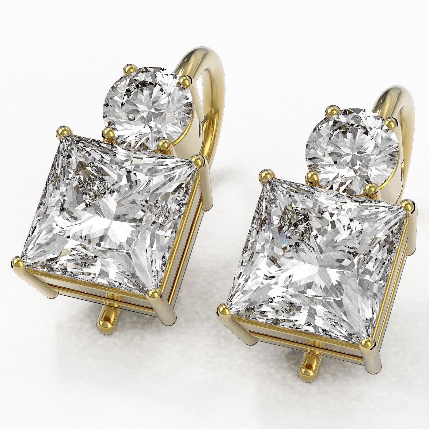 REF-598Y5X - SKU: 48563 ---- 2.5 ctw Princess Cut Diamond Designer Earrings 18K Yellow Gold