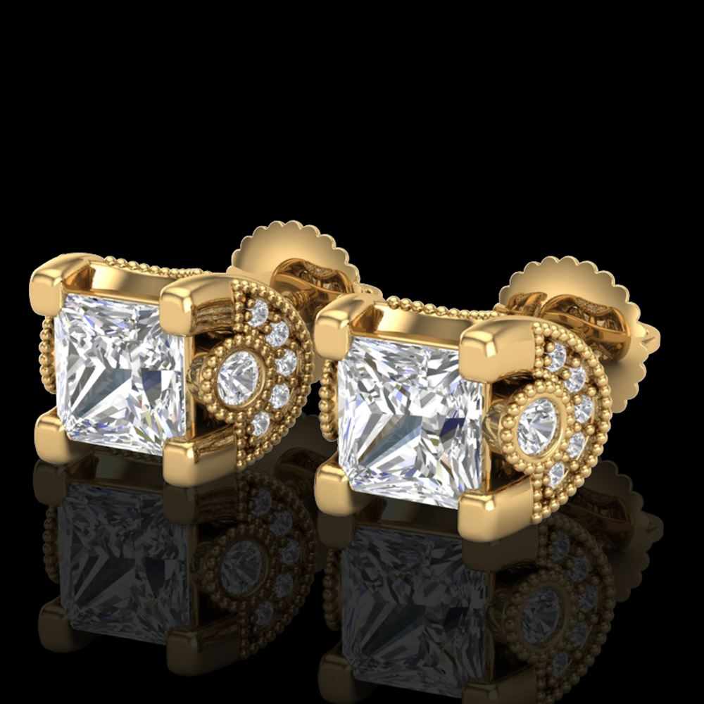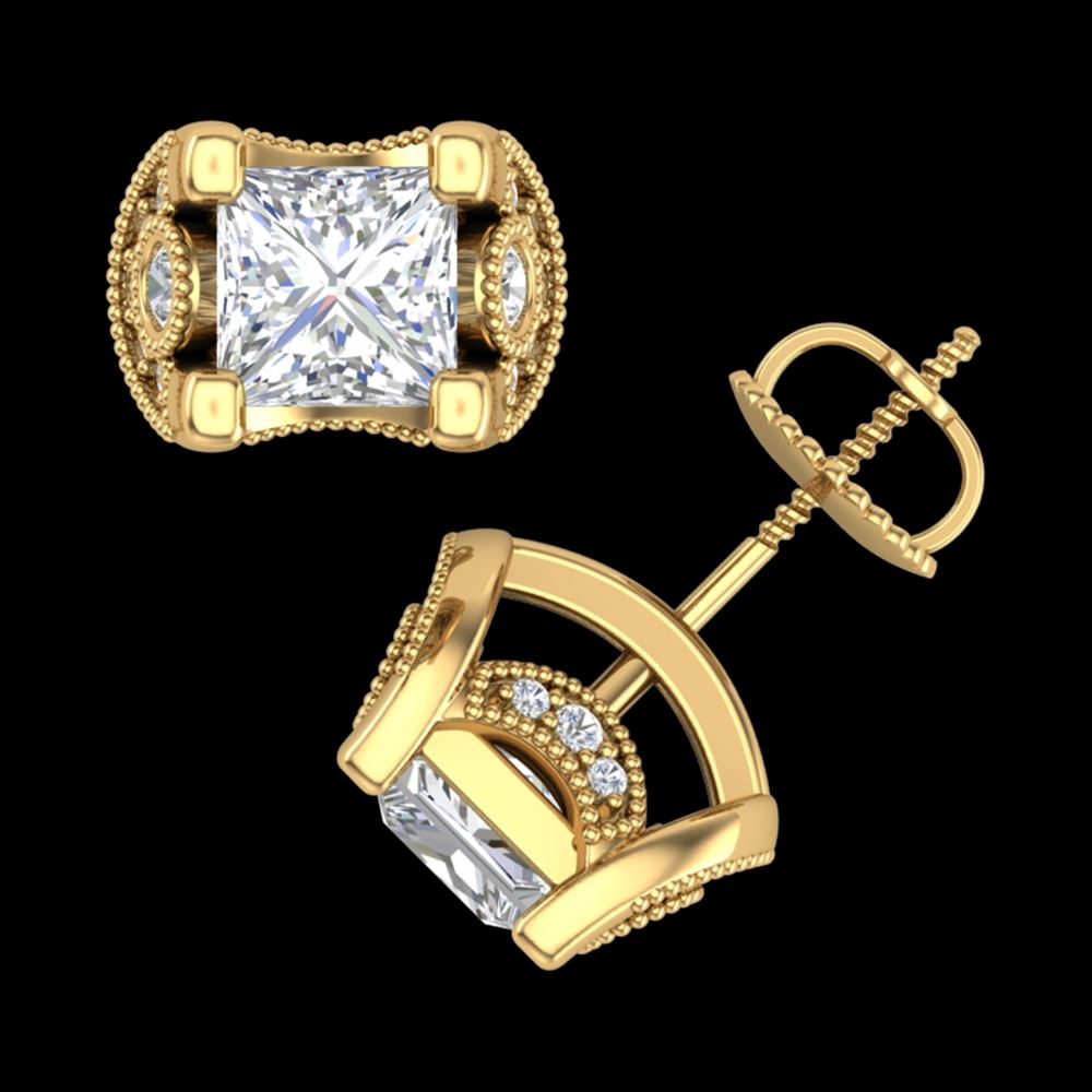 REF-585F2M - SKU: 37153 ---- 2.5 ctw Princess VS/SI Diamond Art Deco Stud Earrings 18k Yellow Gold