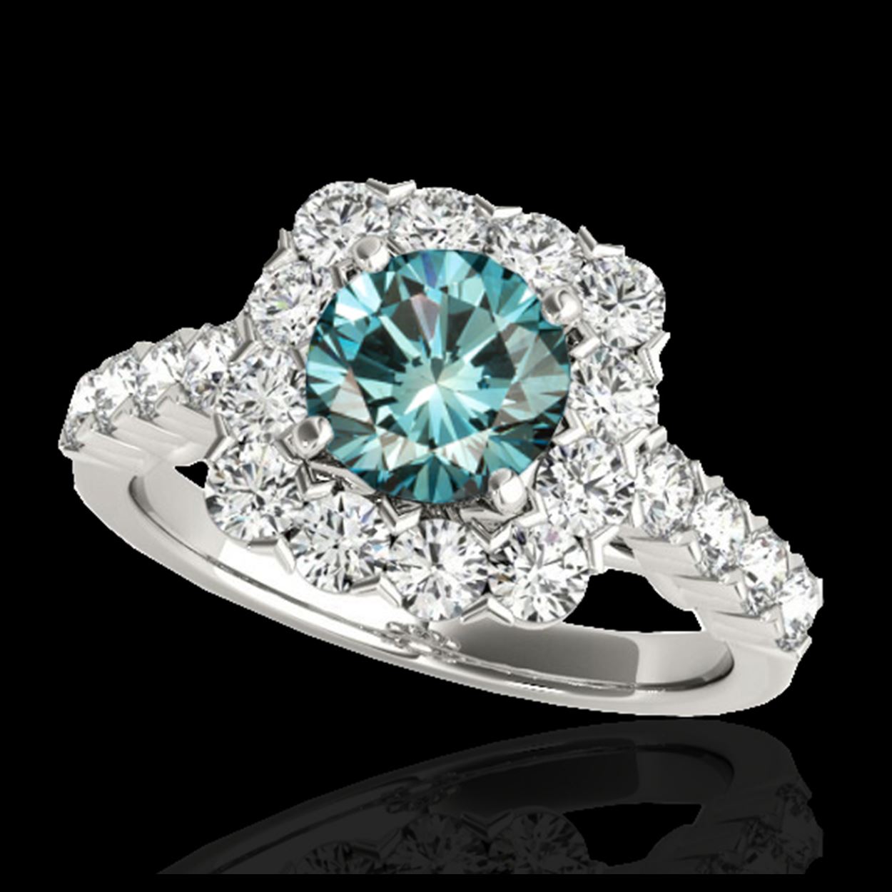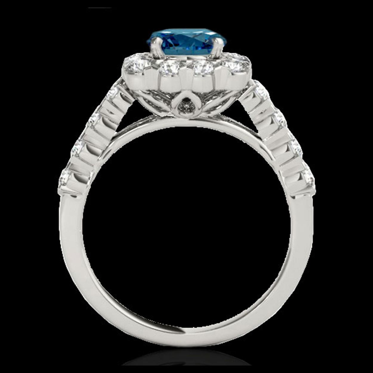 2.5 ctw SI Fancy Blue Diamond Solitaire Halo Ring 10K White Gold