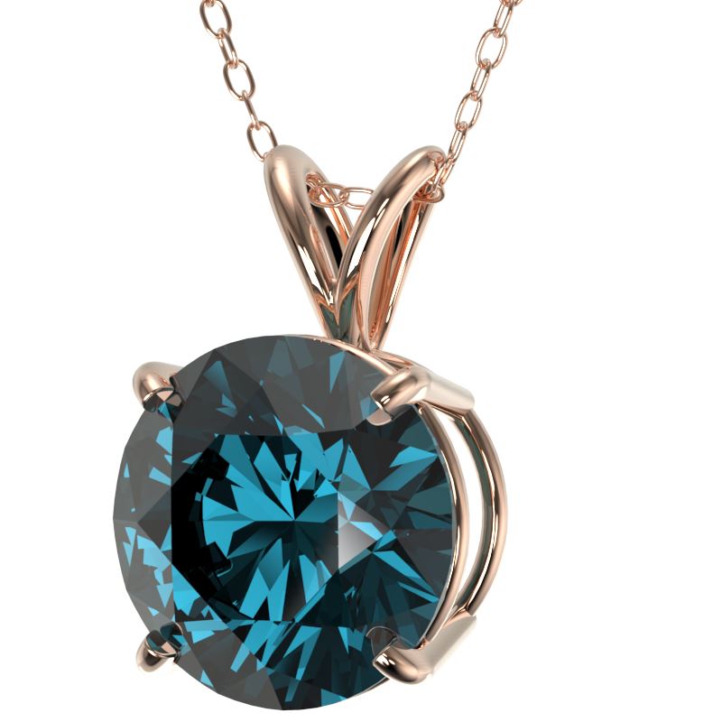 REF-575A8X -33247 ---- 2.50 CTW Certified Intense Blue SI Diamond Solitaire Necklace 10K Rose Gold ---- Luxury Designer Brand Necklace Appraised at $46,050 Certificate Number US33247 10k Rose gold, Necklace Size is 16 Incehs, Necklace measuring approx. Uniform, weighing in total approx. 2 grams. Made in the USA and is stamped 10k, Main stone 2.5 carat total weight containing 1 pieces of Intense Fancy Blue color with SI quality Round shape cut Diamond , Stone #2 carat total weight containing pieces of color with quality shape cut