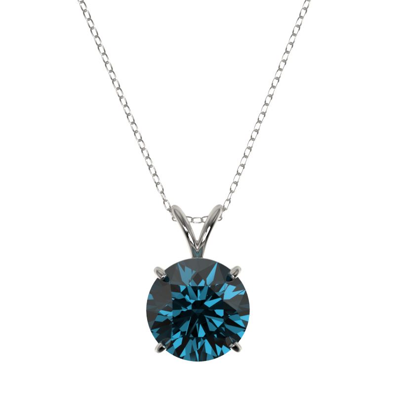 REF-575W8F -33246 ---- 2.50 CTW Certified Intense Blue SI Diamond Solitaire Necklace 10K White Gold ---- Luxury Designer Brand Necklace Appraised at $46,050 Certificate Number US33246 10k White gold, Necklace Size is 16 Incehs, Necklace measuring approx. Uniform, weighing in total approx. 2 grams. Made in the USA and is stamped 10k, Main stone 2.5 carat total weight containing 1 pieces of Intense Fancy Blue color with SI quality Round shape cut Diamond , Stone #2 carat total weight containing pieces of color with quality shape cut