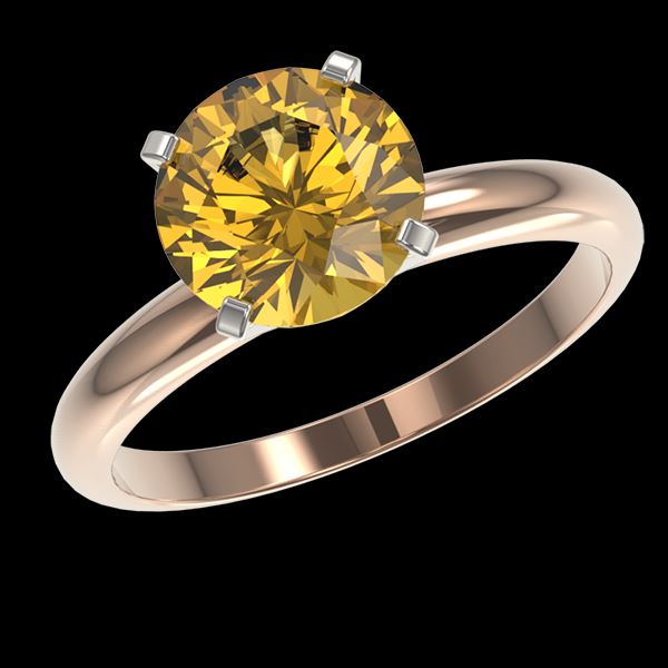 REF-836T4M -32951 ---- 2.50 CTW Certified Intense Yellow SI Diamond Solitaire Ring 10K Rose Gold ---- Luxury Designer Brand Ring Appraised at $50,600 Certificate Number US32951 10k Rose gold, Ring Size is 7, Ring measuring approx. Uniform, weighing in total approx. 2.7 grams. Made in the USA and is stamped 10k, Main stone 2.5 carat total weight containing 1 pieces of Intense Fancy Yellow color with SI quality Round shape cut Diamond , Stone #2 carat total weight containing pieces of color with quality shape cut