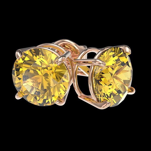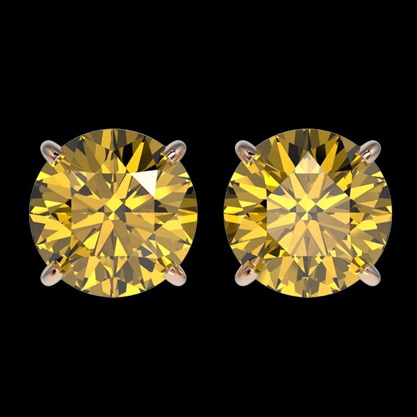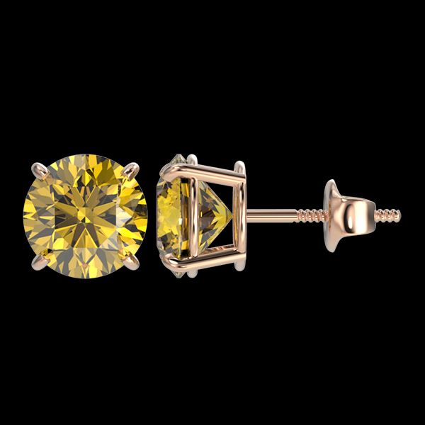 REF-427Y5K -33109 ---- 2.50 CTW Certified Intense Yellow SI Diamond Solitaire Stud Earrings 10K Rose Gold ---- Luxury Designer Brand Earring Appraised at $31,350 Certificate Number US33109 10k Rose gold, Earring Size is Larger, Earring measuring approx. Uniform, weighing in total approx. 2.4 grams. Made in the USA and is stamped 10k, Main stone 2.5 carat total weight containing 2 pieces of Intense Fancy Yellow color with SI quality Round shape cut Diamond , Stone #2 carat total weight containing pieces of color with quality shape cut