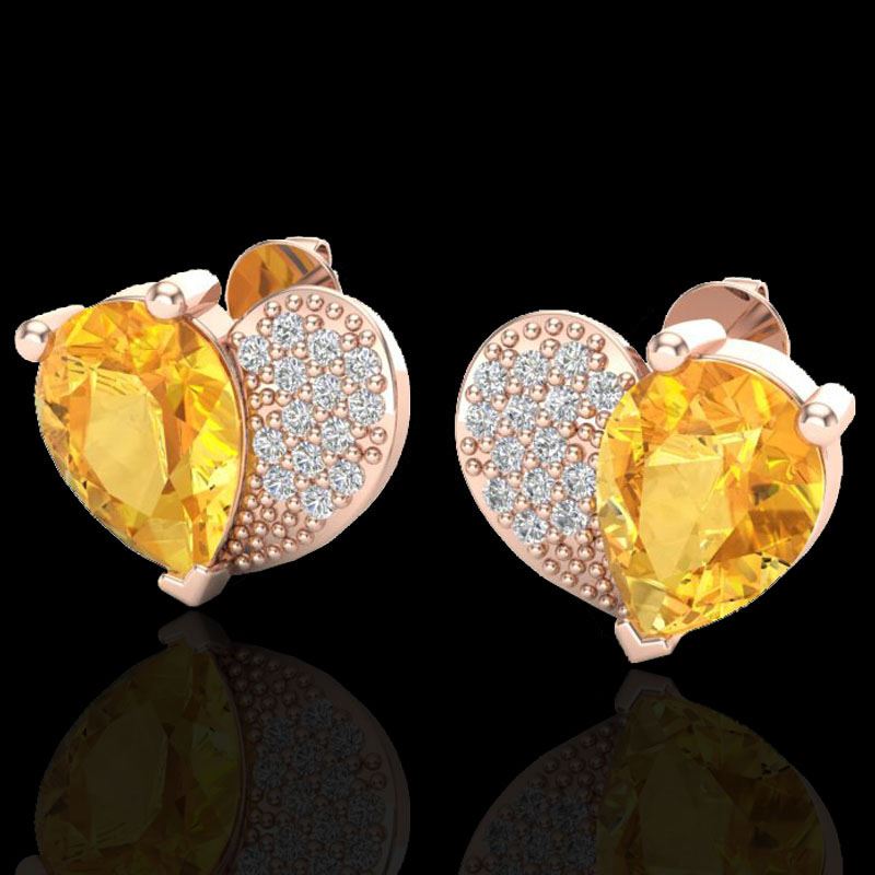 2.50 CTW Citrine & Micro Pave VS/SI Diamond Certified Earrings 10K Rose Gold ---- Luxury Designer Brand Earring Appraised Retail Price at $1,800 ---- SKU Number US20069 10k Rose gold Earring Size is 1/2 Inches, Earring measuring approx. 1/2" X 3/8" , weighing in total approx. 2 grams. Made in the USA and is stamped 10k, Main stone 2.30 carat total weight containing 2 pieces of Translucent Yellow color with AAA quality Pear shape cut Citrine , Stone #2 0.2 carat total weight containing 28 pieces of H-I color with VS/SI quality Round shape cut