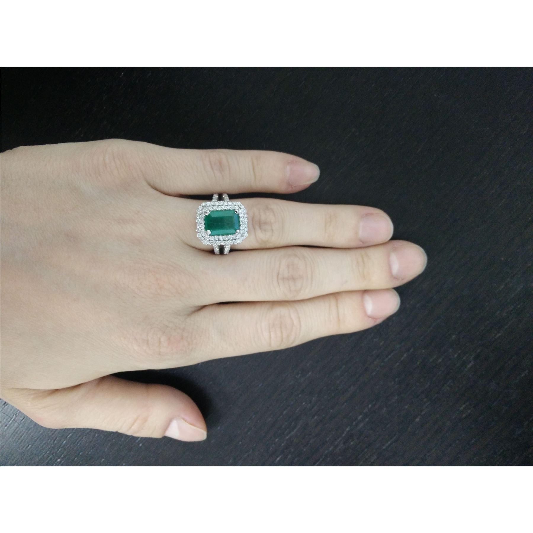 2.50 CTW Emerald 18K White Gold Diamond Ring