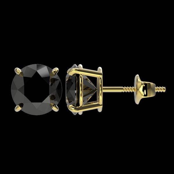 REF-51W3F -33105 ---- 2.50 CTW Fancy Black VS Diamond Solitaire Stud Earrings 10K Yellow Gold ---- Luxury Designer Brand Earring Appraised at $3,750 Certificate Number US33105 10k Yellow gold, Earring Size is Larger, Earring measuring approx. Uniform, weighing in total approx. 2.4 grams. Made in the USA and is stamped 10k, Main stone 2.5 carat total weight containing 2 pieces of Black Opaque color with VS quality Round shape cut Diamond , Stone #2 carat total weight containing pieces of color with quality shape cut