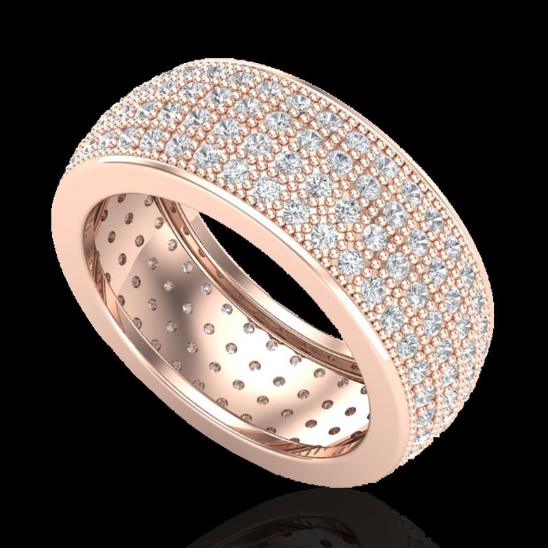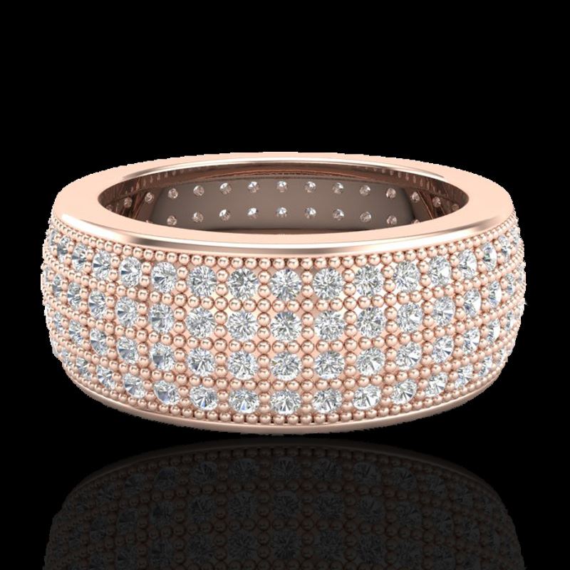 REF-249W3F -20882 ---- 2.50 CTW Micro Pave VS/SI Diamond Eternity Ring 14K Rose Gold ---- Luxury Designer Brand Ring Appraised at $13,700 Certificate Number US20882 14k Rose gold, Ring Size is 7.5, Ring measuring approx. 1/2 " WIDE, weighing in total approx. 7 grams. Made in the USA and is stamped 14k, Main stone 2.5 carat total weight containing 204 pieces of H-J color with VS/SI quality Round shape cut Diamond , Stone #2 carat total weight containing pieces of color with quality shape cut