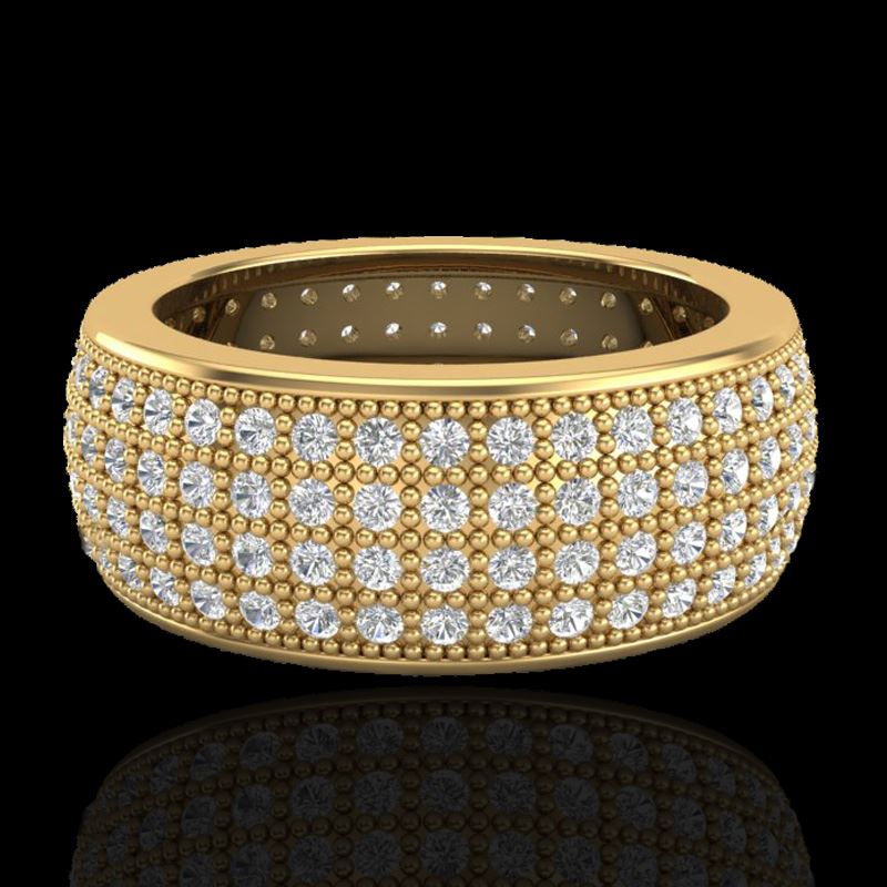 REF-249Y3K -20884 ---- 2.50 CTW Micro Pave VS/SI Diamond Eternity Ring 18K Yellow Gold ---- Luxury Designer Brand Ring Appraised at $13,700 Certificate Number US20884 18k Yellow gold, Ring Size is 7.5, Ring measuring approx. 1/2 " WIDE, weighing in total approx. 7.5 grams. Made in the USA and is stamped 18k, Main stone 2.5 carat total weight containing 204 pieces of H-J color with VS/SI quality Round shape cut Diamond , Stone #2 carat total weight containing pieces of color with quality shape cut