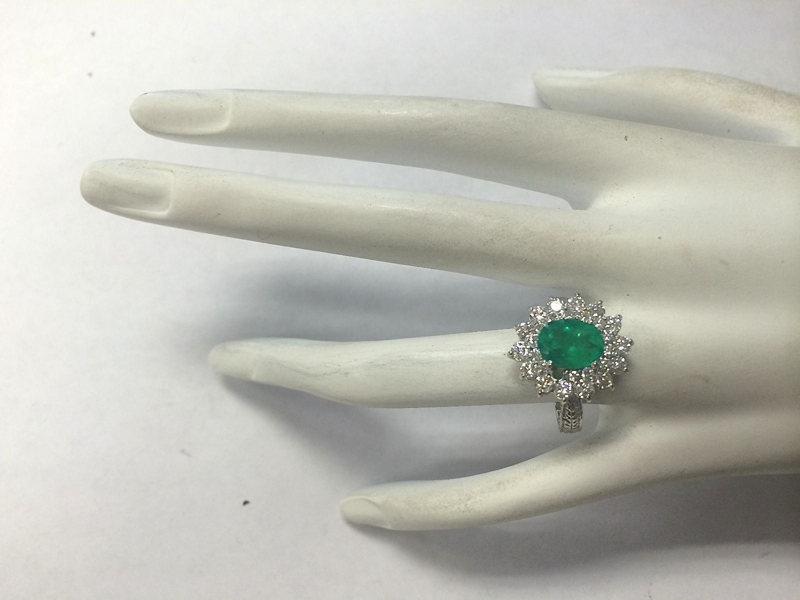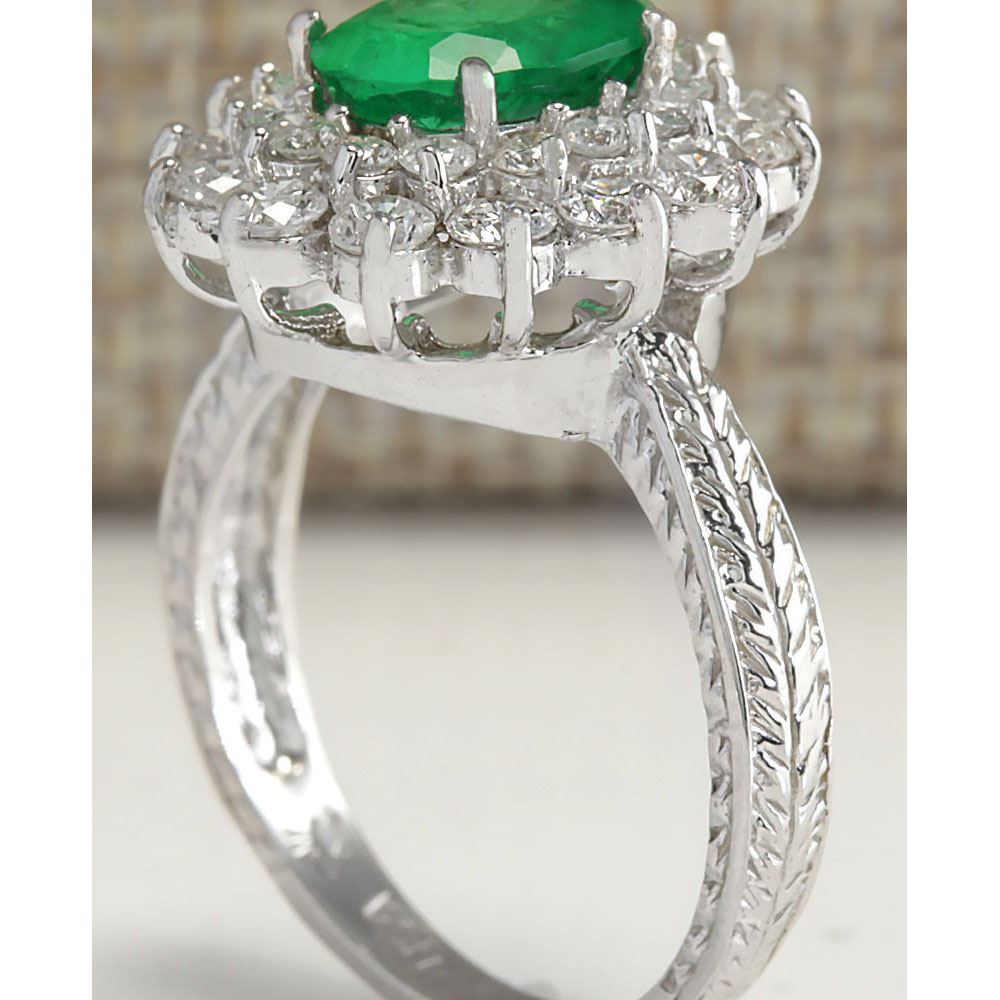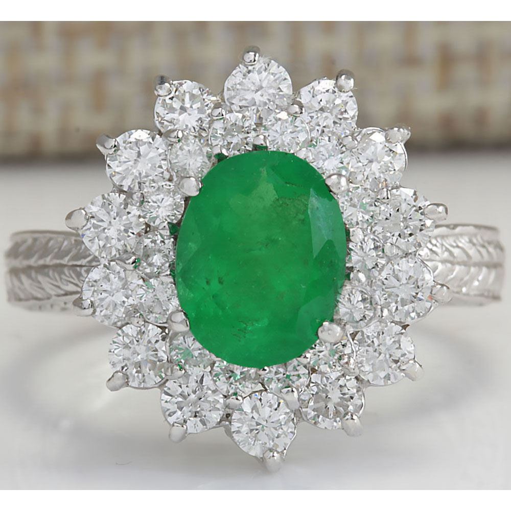 2.50 CTW Natural Emerald And Diamond Ring 18K Solid White Gold