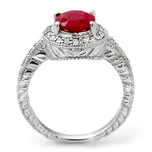 REF-89A3X -11927 ---- 2.50 CTW Ruby & Diamond Ring 14K White Gold ---- Luxury Designer Brand Ring Appraised at $6,350 Certificate Number US11927 14k White gold, Ring Size is 6.5, Ring measuring approx. 1/2" x 3/4" , weighing in total approx. 5 grams. Made in the USA and is stamped 14k, Main stone 2.1 carat total weight containing 1 pieces of Mid-Opaque-Deep Red color with AAA quality Oval shape cut Ruby , Stone #2 0.4 carat total weight containing 26 pieces of H-I color with VS/SI quality Round shape cut Diamond