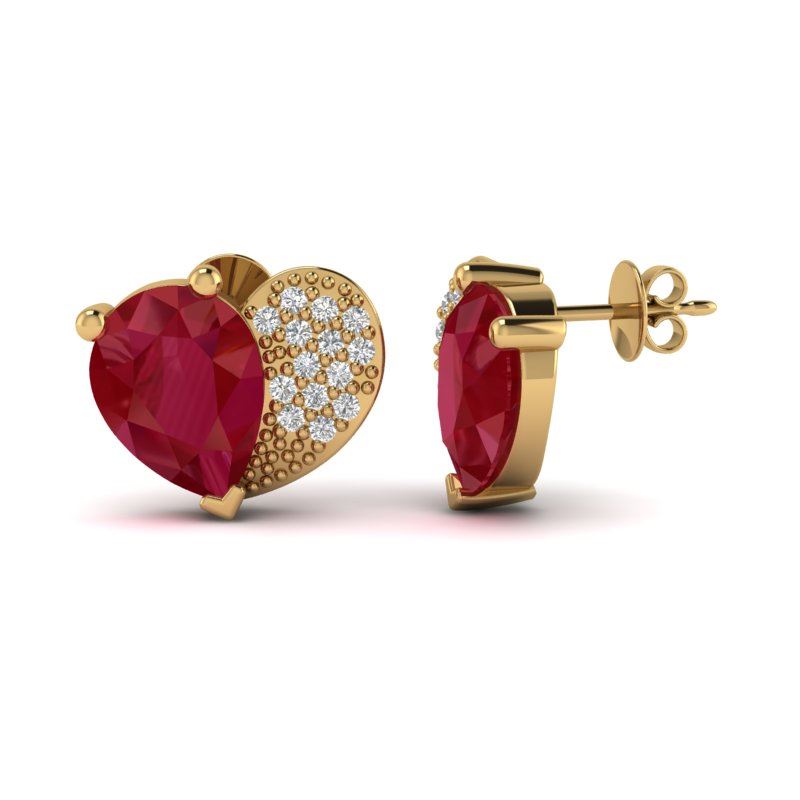 REF-33Y8K -20078 ---- 2.50 CTW Ruby & Micro Pave VS/SI Diamond Earrings 10K Yellow Gold ---- Luxury Designer Brand Earring Appraised at $2,250 Certificate Number US20078 10k Yellow gold, Earring Size is 1/2Inches, Earring measuring approx. 1/2" X 3/8" , weighing in total approx. 2 grams. Made in the USA and is stamped 10k, Main stone 2.3 carat total weight containing 2 pieces of Mid-Opaque-Deep Red color with AAA quality Pear shape cut Ruby , Stone #2 0.2 carat total weight containing 28 pieces of H-I color with VS/SI quality Round shape cut Diamond