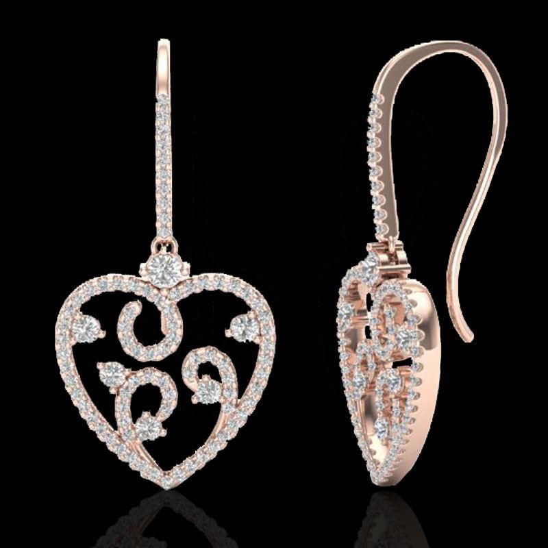 REF-179H3A -20096 ---- 2.50 CTW VS/SI Diamond Micro Pave Designer Earrings 14K Rose Gold ---- Luxury Designer Brand Earring Appraised at $9,850 Certificate Number US20096 14k Rose gold, Earring Size is 1 1/2 Inches, Earring measuring approx. 1 " X 1 1/2 " , weighing in total approx. 6 grams. Made in the USA and is stamped 14k, Main stone 0.97 carat total weight containing 12 pieces of H-J color with VS/SI quality Round shape cut Diamond , Stone #2 1.53 carat total weight containing 180 pieces of H-I color with VS/SI quality Round shape cut Diamond