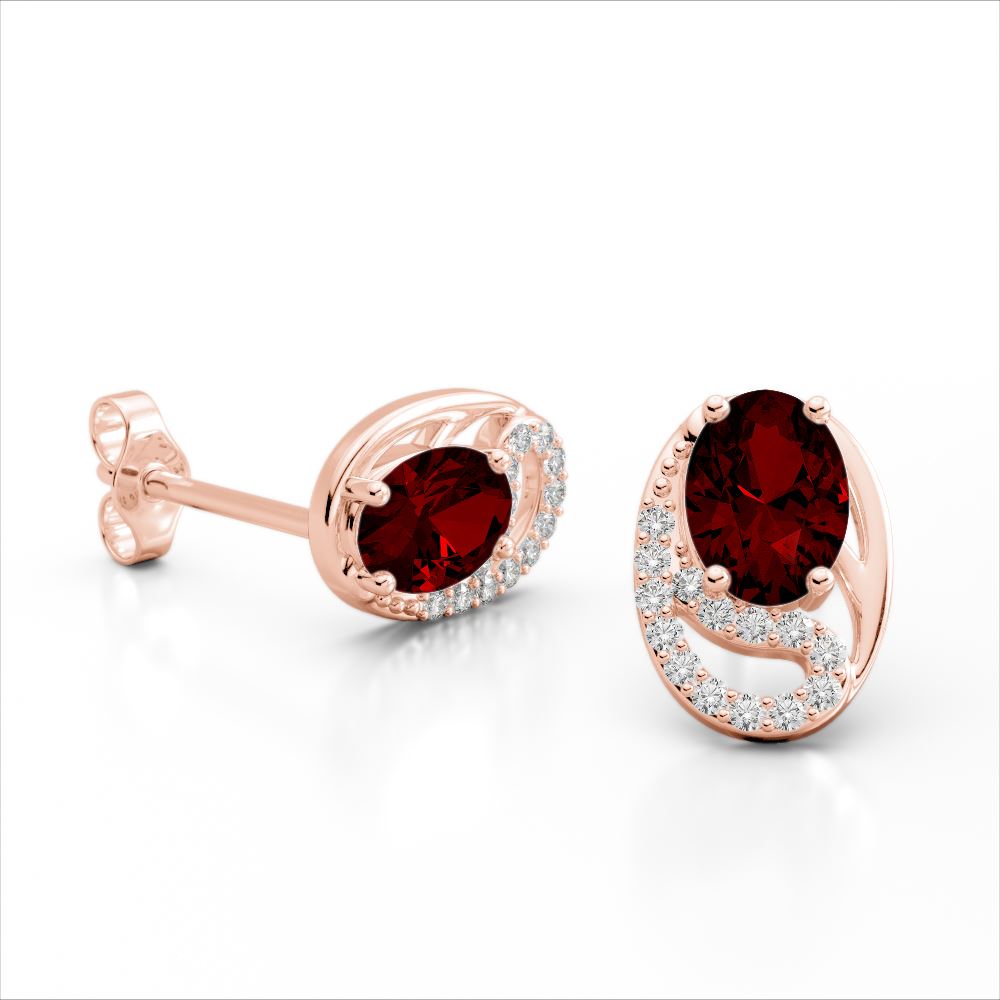 REF-25W6F -22333 ---- 2.50 Garnet & Micro Pave VS/SI Diamond Stud Earrings 10K Rose Gold ---- Luxury Designer Brand Earring Appraised at $1,550 Certificate Number US22333 10k Rose gold, Earring Size is 7/16 Inches, Earring measuring approx. 7/16"X5/16" , weighing in total approx. 1.8 grams. Made in the USA and is stamped 10k, Main stone 2.25 carat total weight containing 2 pieces of Saturated purplish Red color with AAA quality Oval shape cut Garnet , Stone #2 0.25 carat total weight containing 28 pieces of H-I color with VS/SI quality Round shape cut Diamond