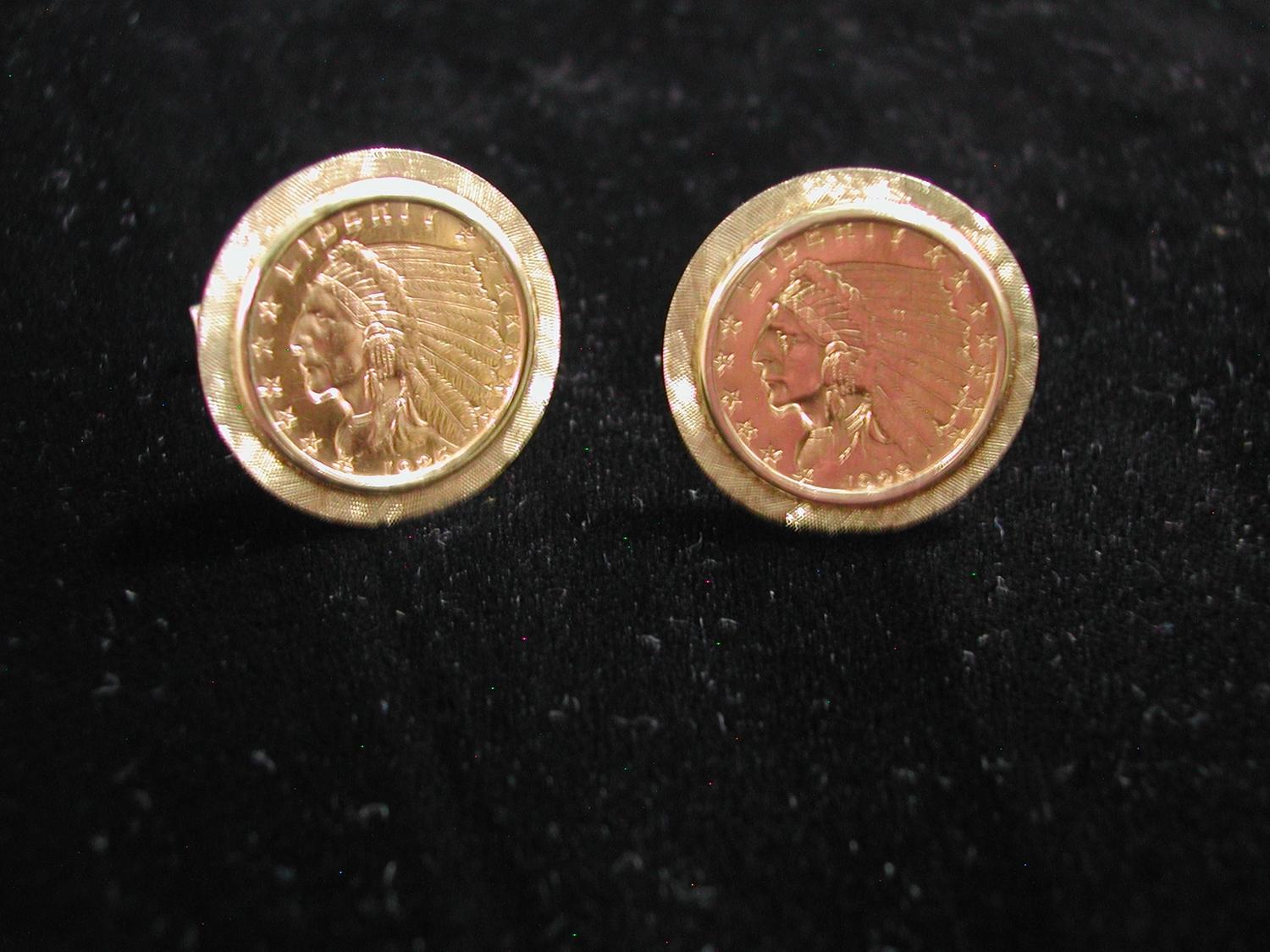 Pair of Gold Coin Cufflinks...1926 & 1928 $2.50 Gold Indian Head Quarter Eagle in UNC condition mounted in 14K gold Cuff Links. With written appraisal of $3500.00