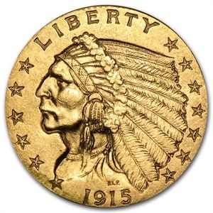 $2.50 Indian Gold Quarter Eagle - Extra Fine **|**|** Year: 1908-1929 ; Mint Mark: Extra Fine ; Grade: Varies ; Denomination: 2.5 ; MSRP: $600