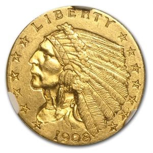 $2.50 Indian Gold Quarter Eagle - MS-61 NGC or PCGS **|**|** Year: 1908-1929 ; Mint Mark: MS-61 ; Grade: Varies ; Denomination: 2.5 ; MSRP: $700