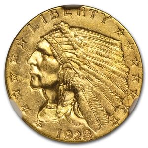 $2.50 Indian Gold Quarter Eagle - MS-64 NGC or PCGS **|**|** Year: 1908-1929 ; Mint Mark: MS-64 ; Grade: Varies ; Denomination: 2.5 ; MSRP: $1500