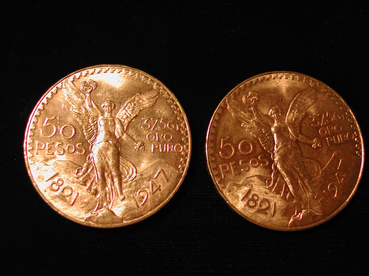 2 - 50 PESOS MEXICAN GOLD PIECES (1-2 OZ OR 37.5 GRAMS ) X$